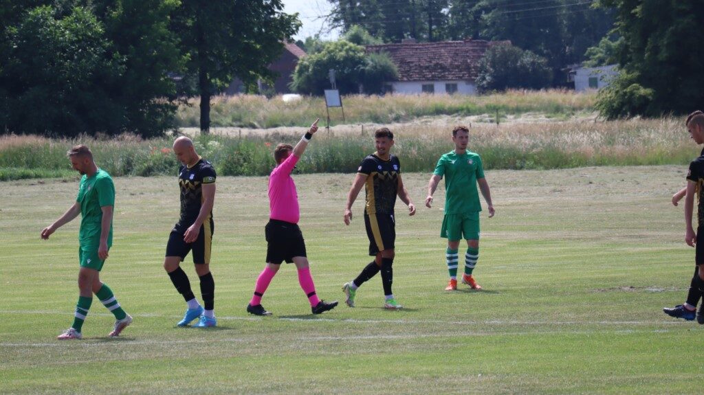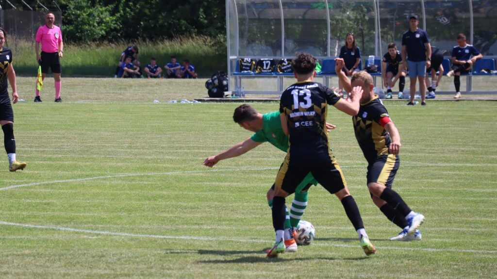 Potem jeszcze Mateusz Kasprzak miał dobrą okazję po podaniu K. Czabańskiego, ale nie udało mu się umieścić piłki w siatce. Z kolei Mateusz Olikiewicz mógł zmniejszyć rozmiary porażki, lecz Mateusz Wronecki nie dał się zaskoczyć.