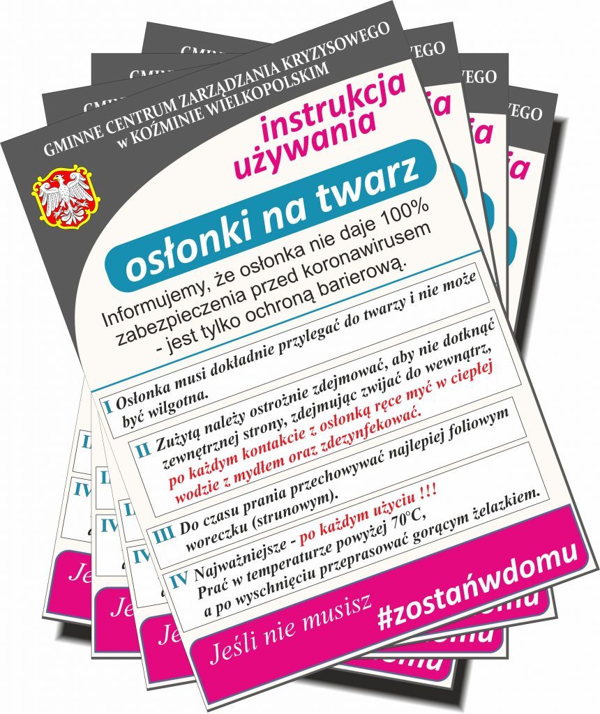 Urząd Miasta i Gminy w Koźminie Wlkp. rozprowadza osłonki na twarz dla mieszkańców gminy.