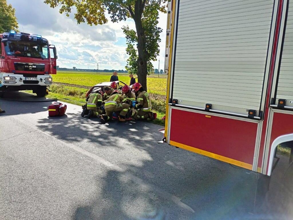 Na miejsce zdarzenia skierowano dwa zastępy z Jednostki Ratowniczo-Gaśniczej w Krotoszynie oraz grupę operacyjną komendanta powiatowego PSP, a także Zespół Ratownictwa Medycznego i policję. Jak się okazało, na prostym odcinku drogi samochód osobowy zjechał do rowu i uderzył w drzewo. W pojeździe znajdowała się jedna nieprzytomna osoba.