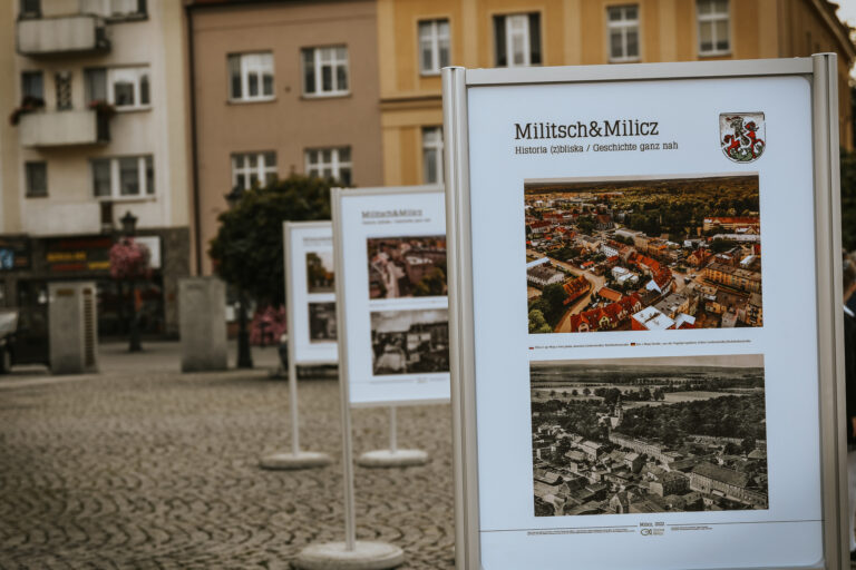 Najważniejszym punktem programu wizyty przedstawicieli miast partnerskich był wernisaż wystawy „Militsch&Milicz. Historia (z)bliska”. Dzięki tej ekspozycji możemy spojrzeć na Milicz oczami dawnych niemieckich mieszkańców i współczesnych, polskich. Składa się na nią 28 fotografii starego (przedwojennego) i współczesnego Milicza. Zdjęcia starego miasta zostały gminie udostępnione przez Ziomkostwo Milicko-Żmigrodzkie.