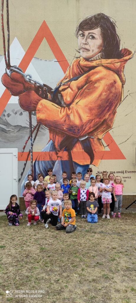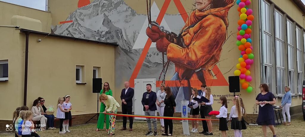 Sylwetkę słynnej himalaistki przedstawili zebranym uczniowie – Julia Pasznicka, Dawid Nowak i Lena Gibasiewicz. Z kolei dyrektor Małgorzata Posacka przypomniała etapy realizacji nadania szkole imienia. Mówiła też o tym, w jakich działaniach w ciągu roku unaoczniała się idea patronki. Wyjaśniła znaczenie symboliki muralu, gdyż dzieło to nie tylko upiększa przestrzeń szkolną, ale także jest wyrazem pasji i wiary w powodzenie szczytnych zamierzeń. Sylwetka zdobywczyni K2 na tle gór i słońca obrazuje przesłanie, iż każdy ma do pokonania swój Everest. Dyrektor podziękowała wszystkim wspierającym podjęte działania. Wiceburmistrz Łukasz Rokita podkreślił, jak ważne i potrzebne są młodemu pokoleniu cechy patronki szkoły – siła, upór, wiara w siebie. Uroczystość uświetnił pokaz w wykonaniu uczestniczek zajęć tanecznych. Doszło także do symbolicznego przecięcia wstęgi.