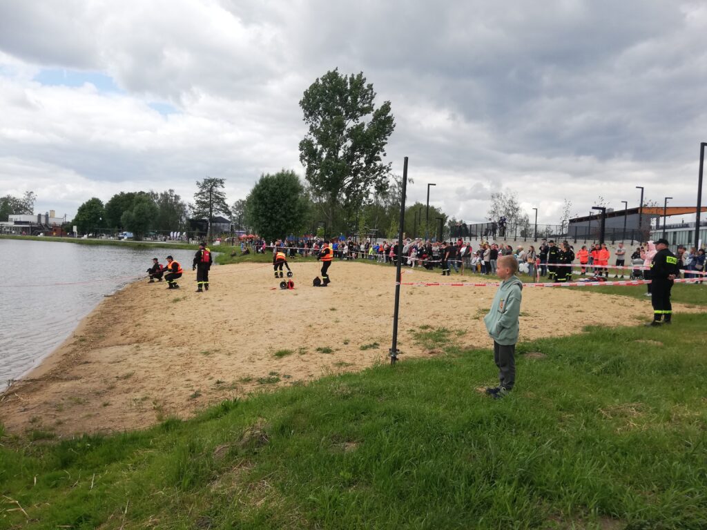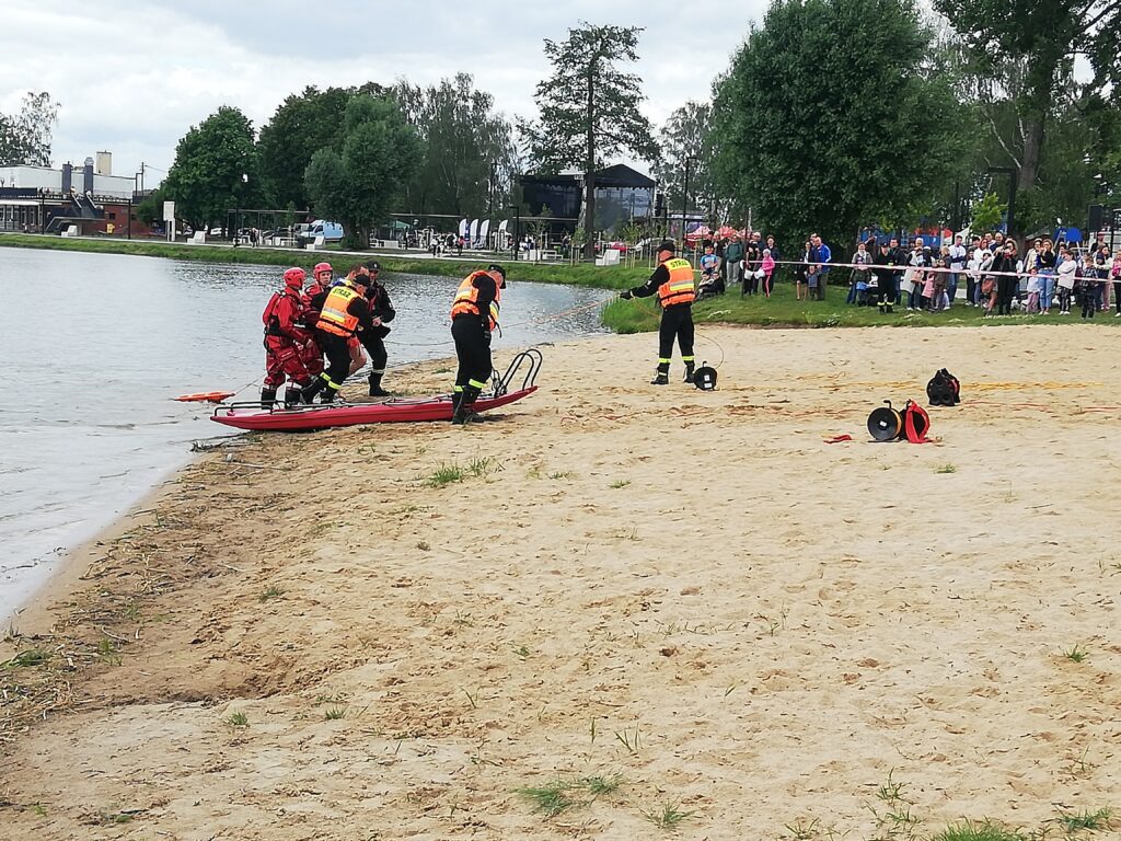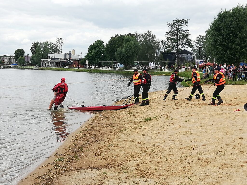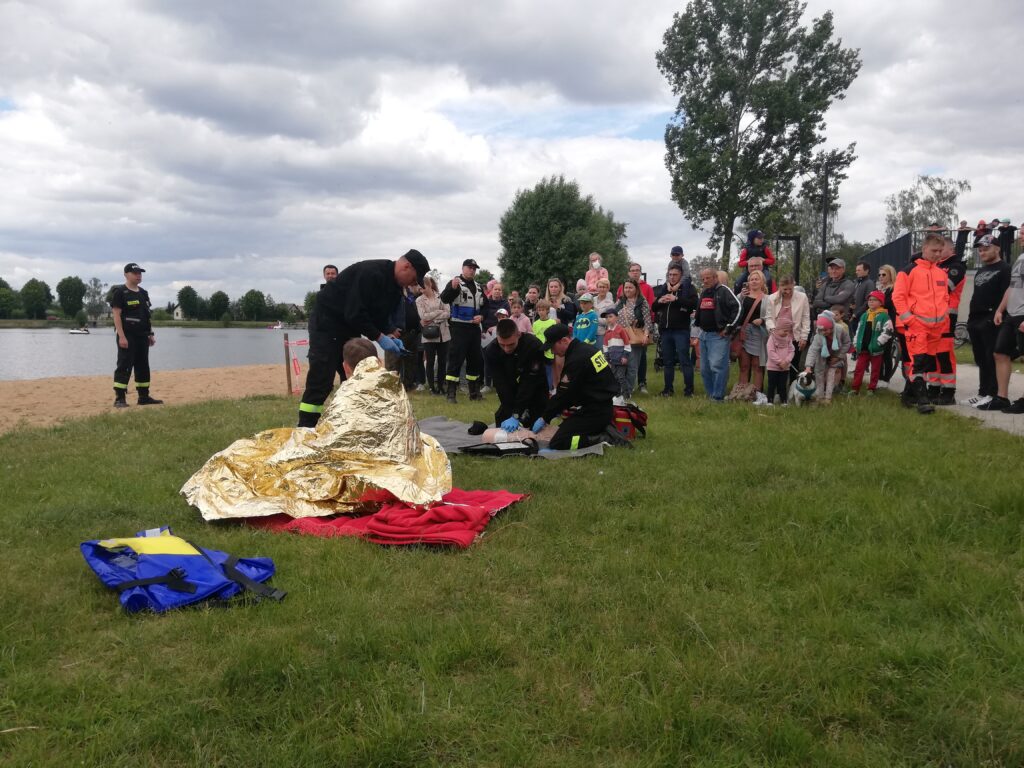 Strażacy doskonale odwzorowali realną akcję ratowniczą, podczas której dwóch kajakarzy znajdujących się w wodzie uzyskało natychmiastową i profesjonalną pomoc. Pozorowane działania uzupełniono o aspekt medyczny, prezentując widzom czynności w ramach kwalifikowanej pierwszej pomocy, związane z resuscytacją krążeniowo-oddechową u osób poszkodowanych w wodzie.