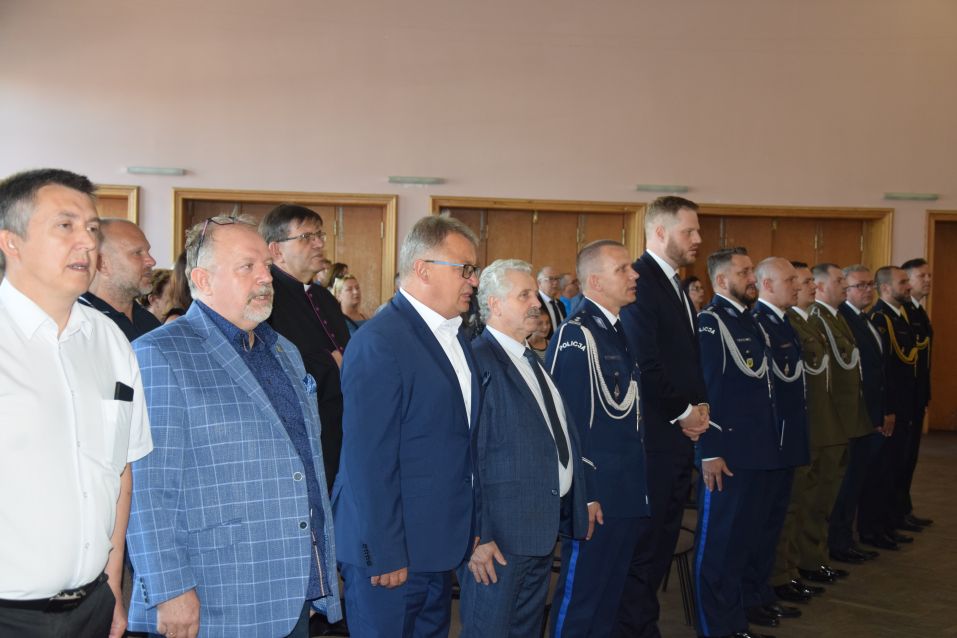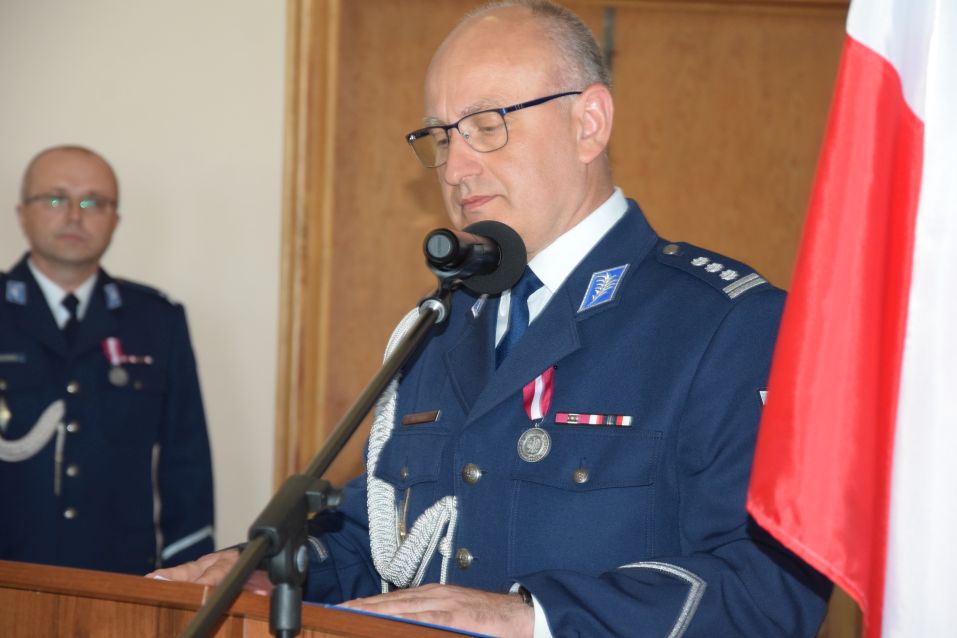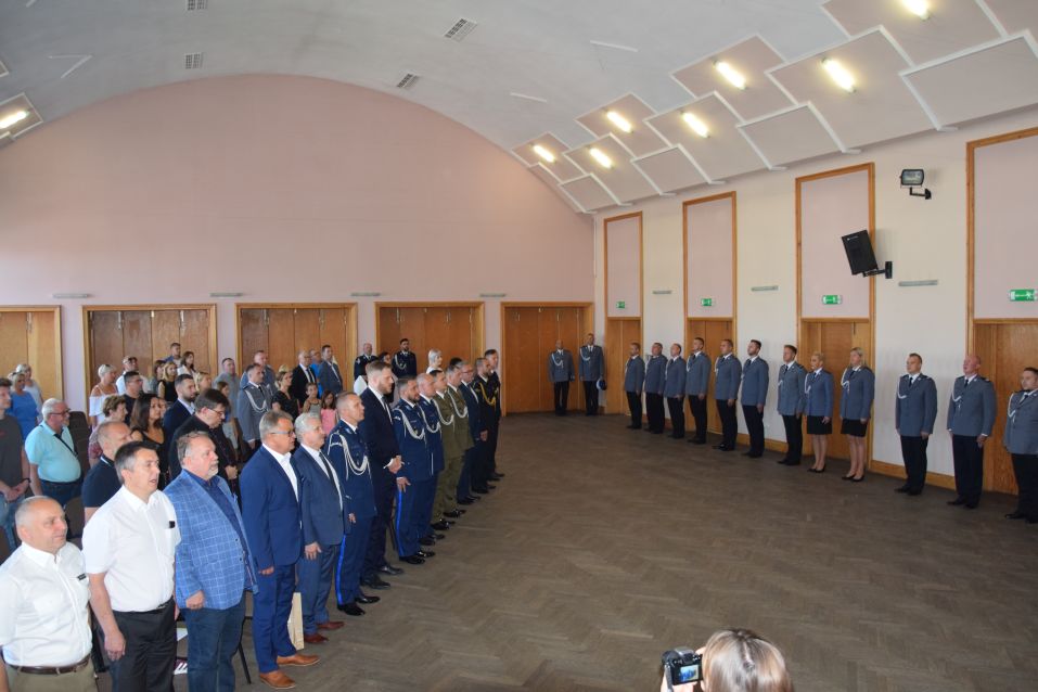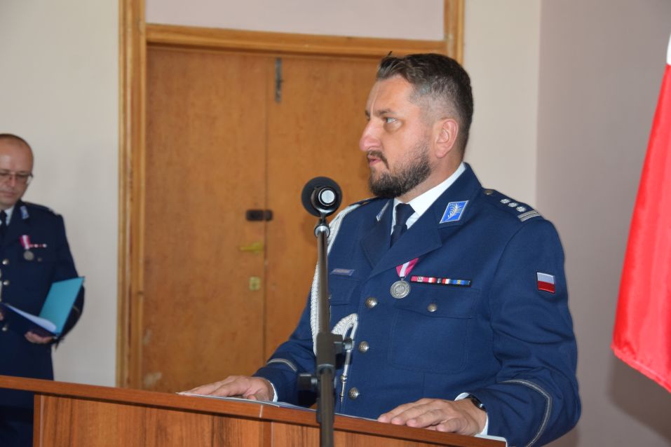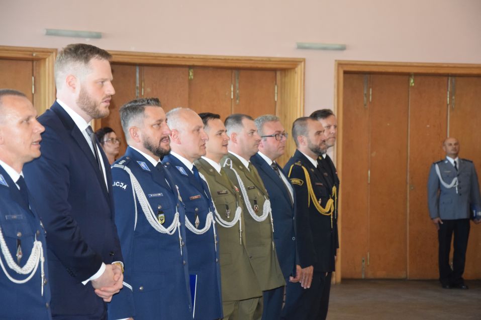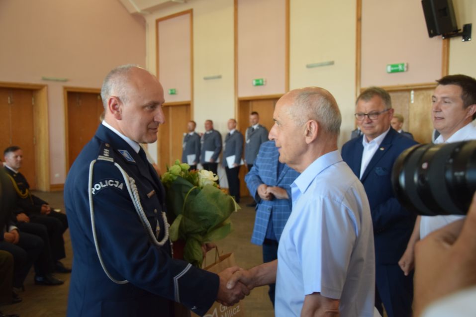 Po wspólnym odśpiewaniu hymnu państwowego, swoje przemówienie wygłosił komendant powiatowy policji w Miliczu. Podziękował wszystkim swoim podwładnym za rok ciężkiej i odpowiedzialnej pracy na rzecz bezpieczeństwa mieszkańców powiatu milickiego. Podkreślił wyjątkowość minionego roku, biorąc pod uwagę pandemię koronawirusa oraz wojnę trwającą na Ukrainie. Serdecznie podziękował również samorządowcom za okazane wsparcie. – Nasza formacja obchodzi dziś 103. rocznicę powstania. 24 lipca 1919 przyjęta została przez sejm II Rzeczpospolitej ustawa o powołaniu Policji Państwowej. Służba wymaga wielu poświęceń, niejednokrotnie tych największych. To specjalny zawód dla wyjątkowych ludzi, którzy w życiu codziennym przestrzegają zasad moralnych i mają nieposzlakowaną opinię. Wymaga się od nas przede wszystkim wrażliwości na krzywdę drugiego człowieka. Pamiętajmy, że na szacunek ludzi trzeba sobie zasłużyć. Szczególnie chciałbym podziękować wójtowi Andrzejowi Białemu i radnym gminy Krośnice za przychylność i pomoc w przekazaniu gruntów przeznaczonych pod planowaną na przyszły rok budowę posterunku Policji w Krośnicach – mówił insp. Mariusz Tański.