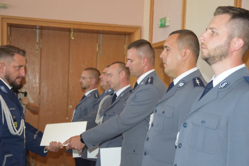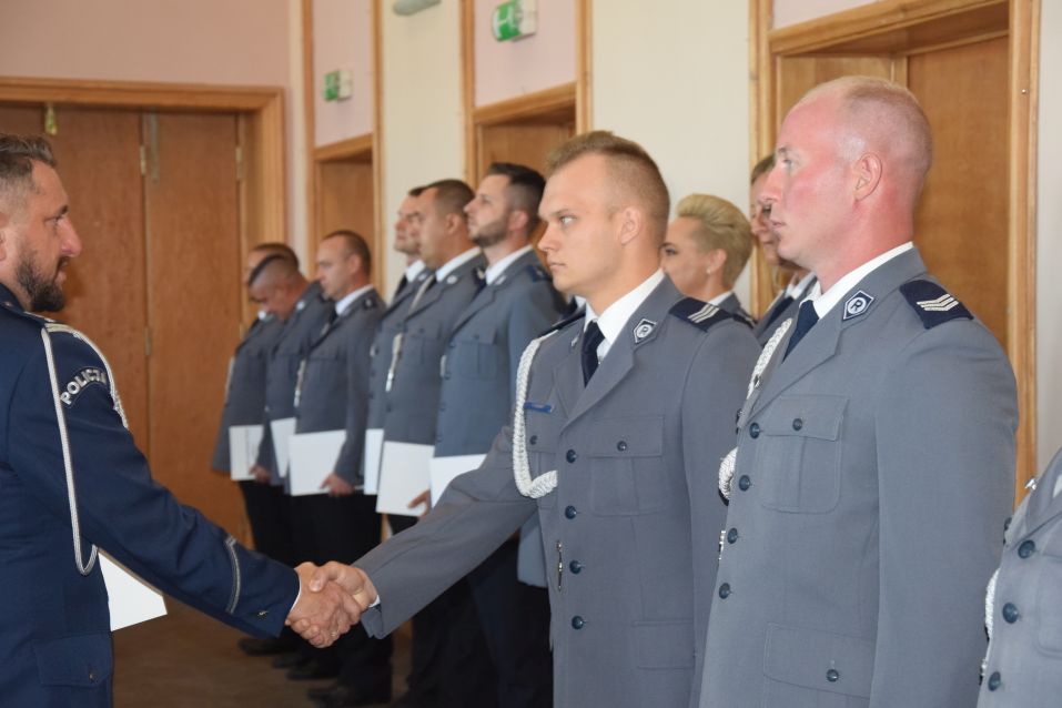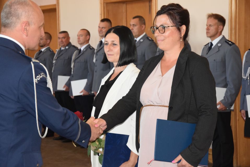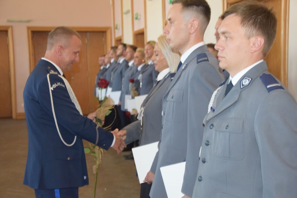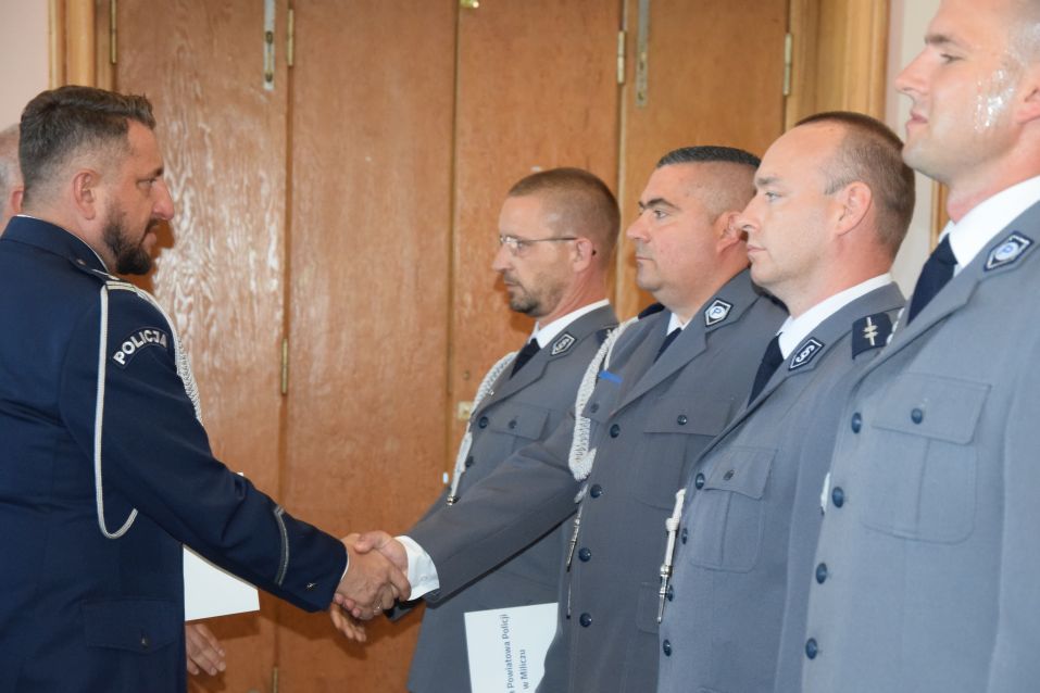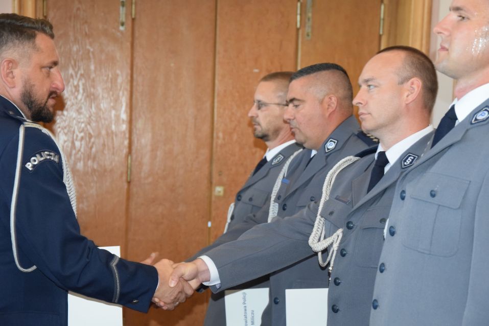 Kolejnym punktem uroczystości było wręczenie aktów mianowania na wyższe stopnie policyjne, nagród i wyróżnień dla funkcjonariuszy i pracowników cywilnych. Stopień inspektora otrzymał Mariusz Tański – komendant powiatowy policji w Miliczu, a nadkomisarza Radosław Bury. Na aspiranta sztabowego awansowali: Konrad Grąbka i Tomasz Wojtyczka. Starszym aspirantami zostali: Maciej Frankiewicz i Przemysław Mikrut. Awans na aspiranta otrzymali: Marek Jakubowski, Przemysław Jarecki i Artur Jaśków. Młodszym aspirantami zostali: Karol Faraniec, Karolina Goczling, Przemysław Hajdun, Jacek Jarosz, Marcin Kosiński, Barbara Pacyna, Aleksandra Piłaszkiewicz i Marcin Topolski. Awans na sierżanta sztabowego otrzymali: Patryk Ekiert, Łukasz Grobelny, Karolina Pawlak i Michał Moczulski. Stopień starszego sierżanta otrzymał Dominik Jangas, a sierżanta Rafał Kukiełka. Starszymi posterunkowymi zostali: Jakub Gohl, Julia Krysiak, Majka Lipińska, Zuzanna Ludwiczak, Kondrad Nowostawski, Magdalena Olechnowicz, Szymon Wójcik i Paweł Ząb. Nagrodę pieniężną za sumienną, wzorową i nienaganną służbę otrzymali: asp. sztab. Dariusz Kaczmarek i Jarosław Owsianka oraz st. sierż. Dawid Backera. Wyróżniono także pracowników cywilnych: Magdalenę Galewską, Patrycję Leszczyszyn, Wiolettę Bigoń, Andrzeja Janasa i Emila Rejeka.