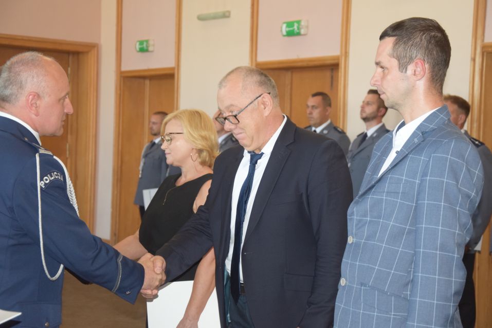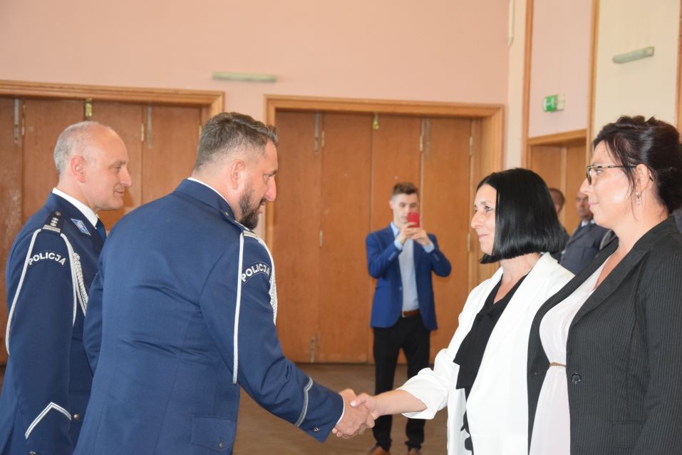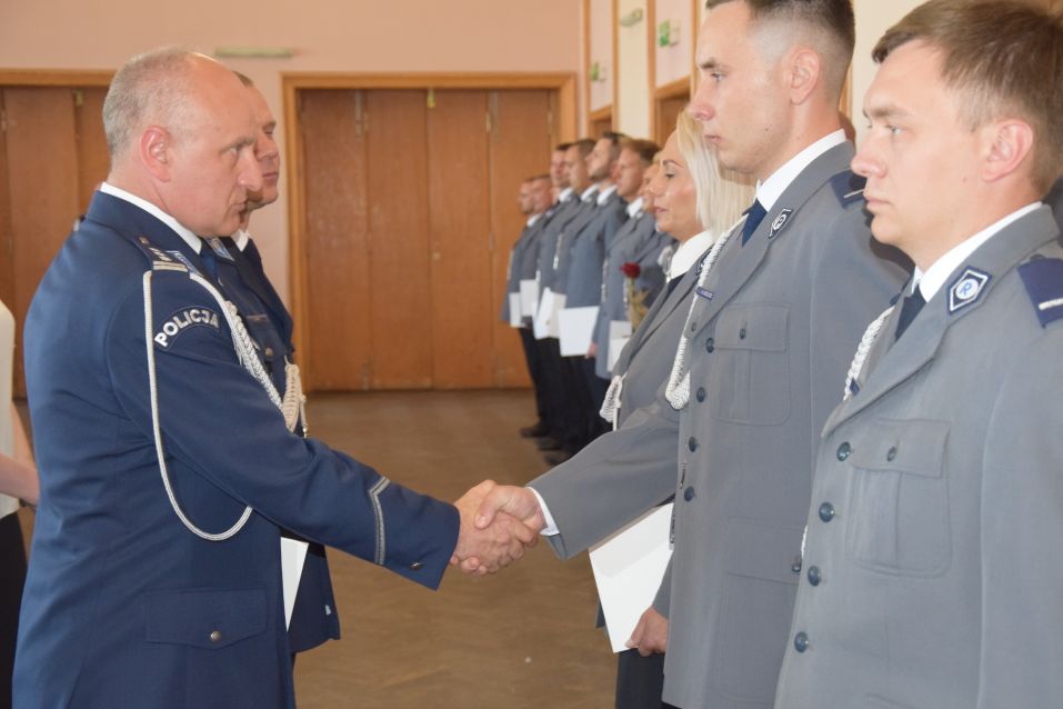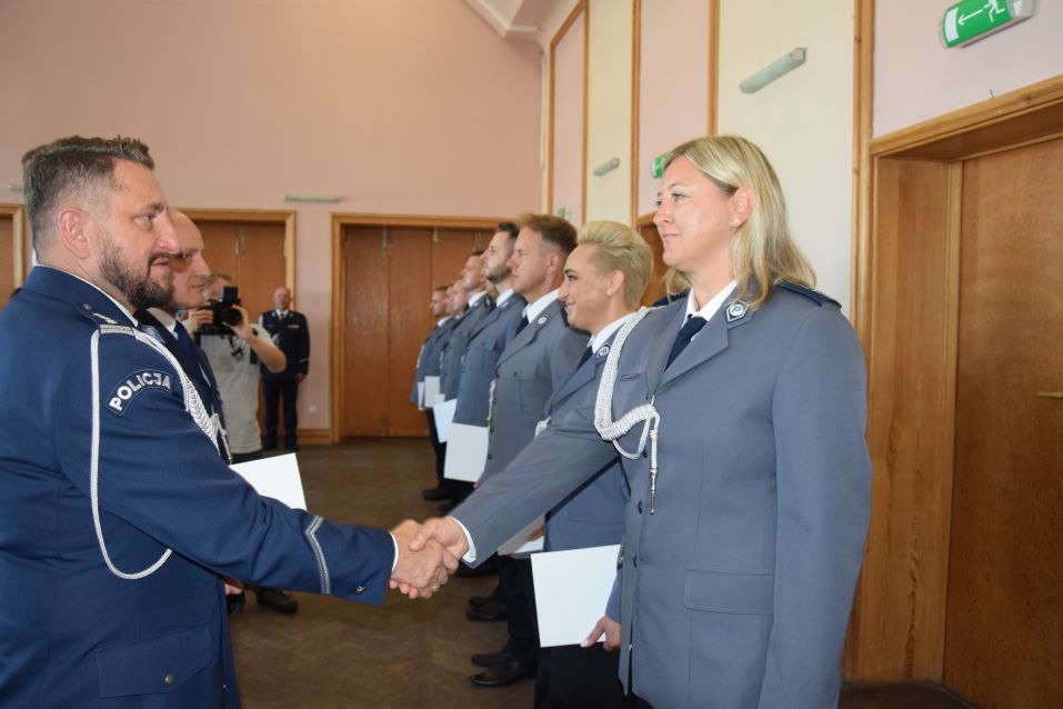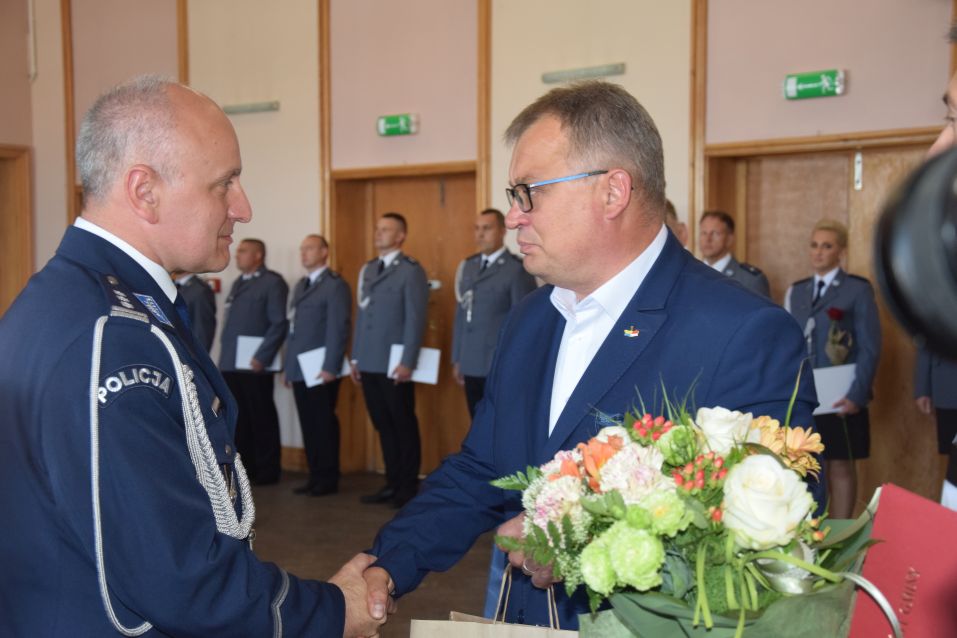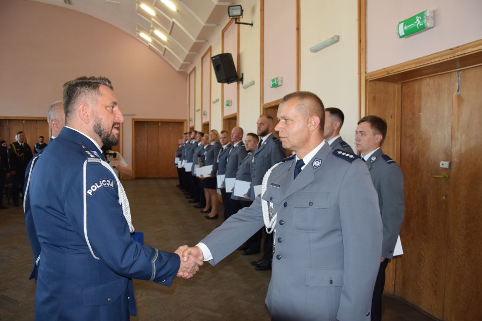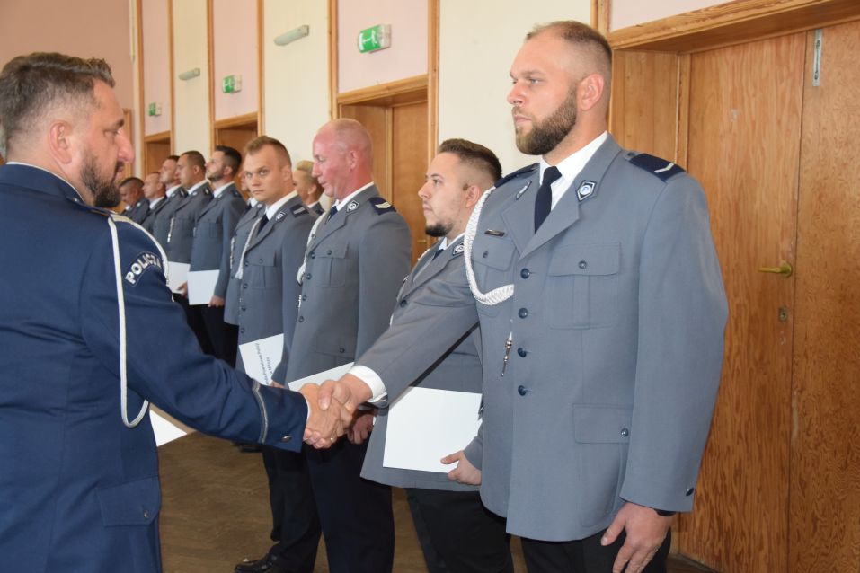 Kolejnym punktem uroczystości było wręczenie aktów mianowania na wyższe stopnie policyjne, nagród i wyróżnień dla funkcjonariuszy i pracowników cywilnych. Stopień inspektora otrzymał Mariusz Tański – komendant powiatowy policji w Miliczu, a nadkomisarza Radosław Bury. Na aspiranta sztabowego awansowali: Konrad Grąbka i Tomasz Wojtyczka. Starszym aspirantami zostali: Maciej Frankiewicz i Przemysław Mikrut. Awans na aspiranta otrzymali: Marek Jakubowski, Przemysław Jarecki i Artur Jaśków. Młodszym aspirantami zostali: Karol Faraniec, Karolina Goczling, Przemysław Hajdun, Jacek Jarosz, Marcin Kosiński, Barbara Pacyna, Aleksandra Piłaszkiewicz i Marcin Topolski. Awans na sierżanta sztabowego otrzymali: Patryk Ekiert, Łukasz Grobelny, Karolina Pawlak i Michał Moczulski. Stopień starszego sierżanta otrzymał Dominik Jangas, a sierżanta Rafał Kukiełka. Starszymi posterunkowymi zostali: Jakub Gohl, Julia Krysiak, Majka Lipińska, Zuzanna Ludwiczak, Kondrad Nowostawski, Magdalena Olechnowicz, Szymon Wójcik i Paweł Ząb. Nagrodę pieniężną za sumienną, wzorową i nienaganną służbę otrzymali: asp. sztab. Dariusz Kaczmarek i Jarosław Owsianka oraz st. sierż. Dawid Backera. Wyróżniono także pracowników cywilnych: Magdalenę Galewską, Patrycję Leszczyszyn, Wiolettę Bigoń, Andrzeja Janasa i Emila Rejeka.