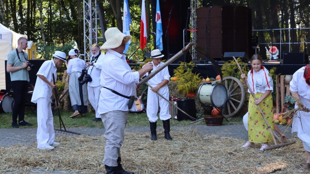 Bardzo ciekawą częścią dożynek był obrzęd dożynkowy, który przeniósł uczestników w dawne czasy, ukazując tradycje żniwiarskie w pełnej krasie. Zespół Helka zaprezentował widowiskowy występ, odtwarzając staropolskie obrzędy z pasją i precyzją. Oprawę muzyczną uroczystości zapewniła grupa KALINA, której dźwięki dopełniły atmosfery święta.