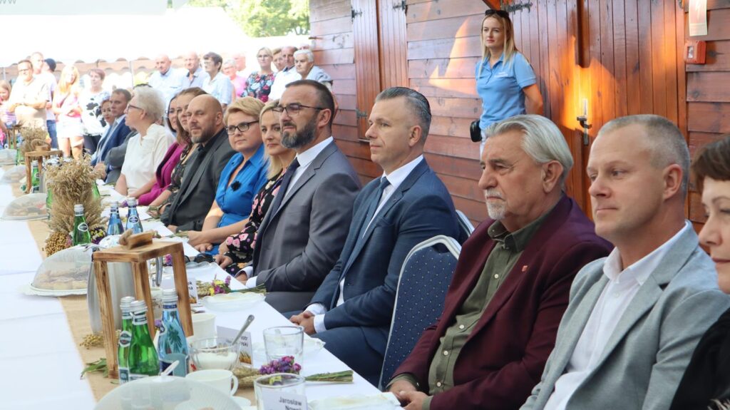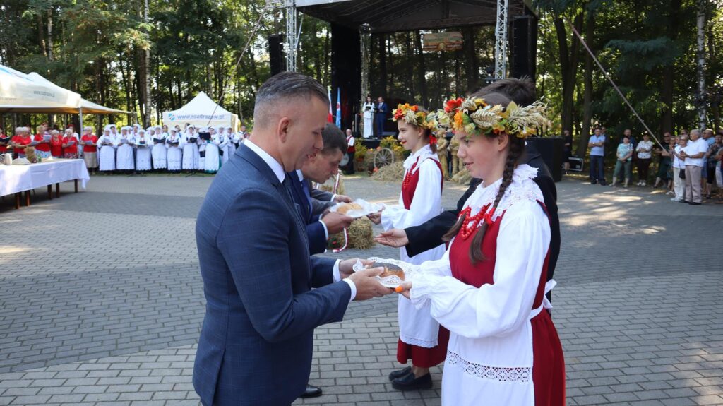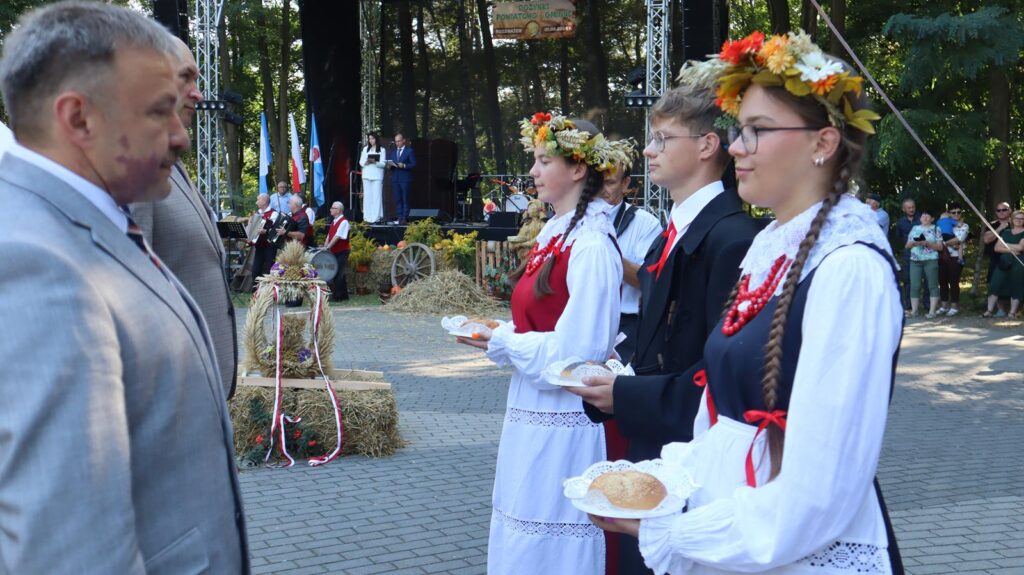 Kulminacyjnym momentem dożynek było przekazanie bochenków chleba – symbolu urodzaju i dostatku – włodarzom powiatu i gminy przez starostów dożynek. W tej wyjątkowej chwili nie zabrakło tradycyjnych przyśpiewek, które wprowadziły uczestników w radosny nastrój. Delegacje powiatowe, gminne, parlamentarzystki Katarzyna Sójka i Alicja Łuczak, radna sejmiku Małgorzata Nowak, duchowni oraz przedstawiciele różnych instytucji społecznych i rolniczych zostali uhonorowani chlebami dożynkowymi, a następnie podzielili się nimi z uczestnikami święta, co podkreśliło ducha wspólnoty i solidarności.