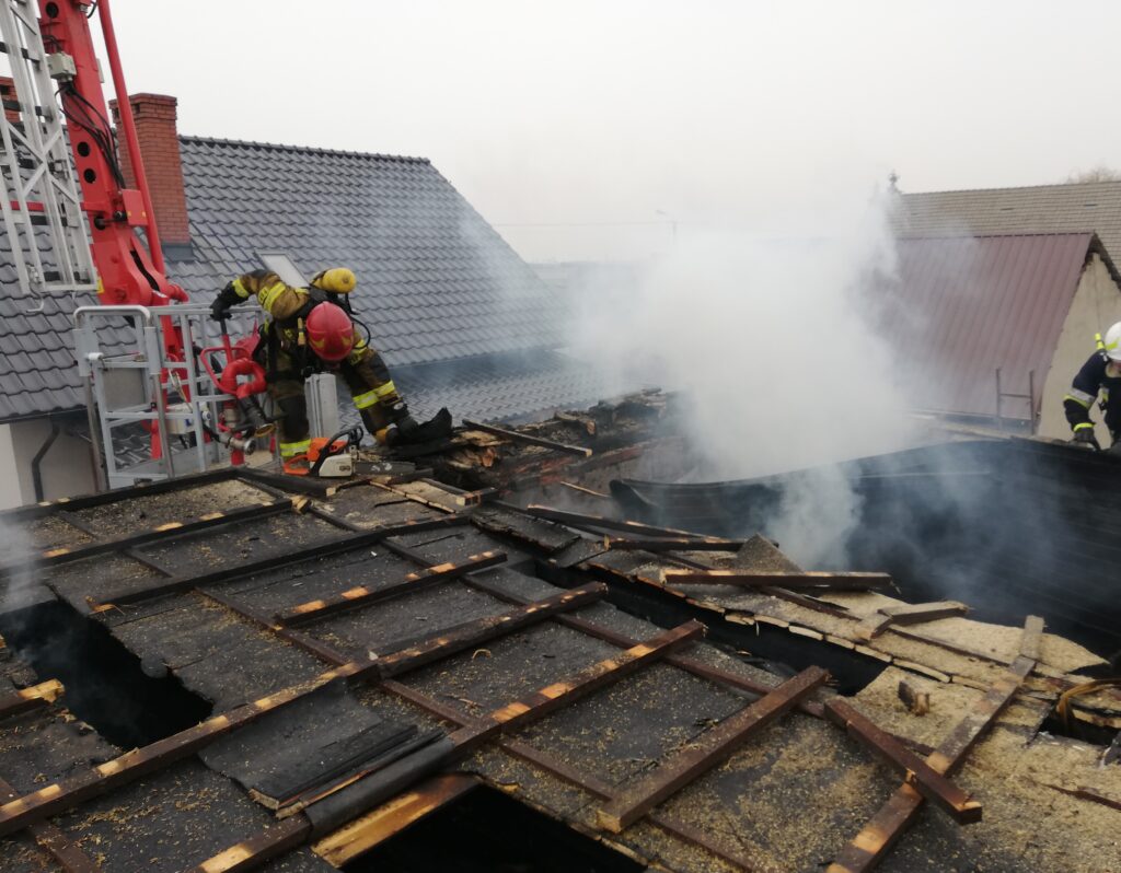 Po ugaszeniu pożaru nadpalony materiał z suszarni wyniesiono na zewnątrz, po czym go dogaszano. – W trakcie prowadzonych działań na bieżąco monitorowano obiekt pod kątem występowania ukrytych zarzewi ognia. Po usunięciu zagrożenia budynek zabezpieczono dostarczonymi przez właściciela plandekami – mówi T. Patryas.