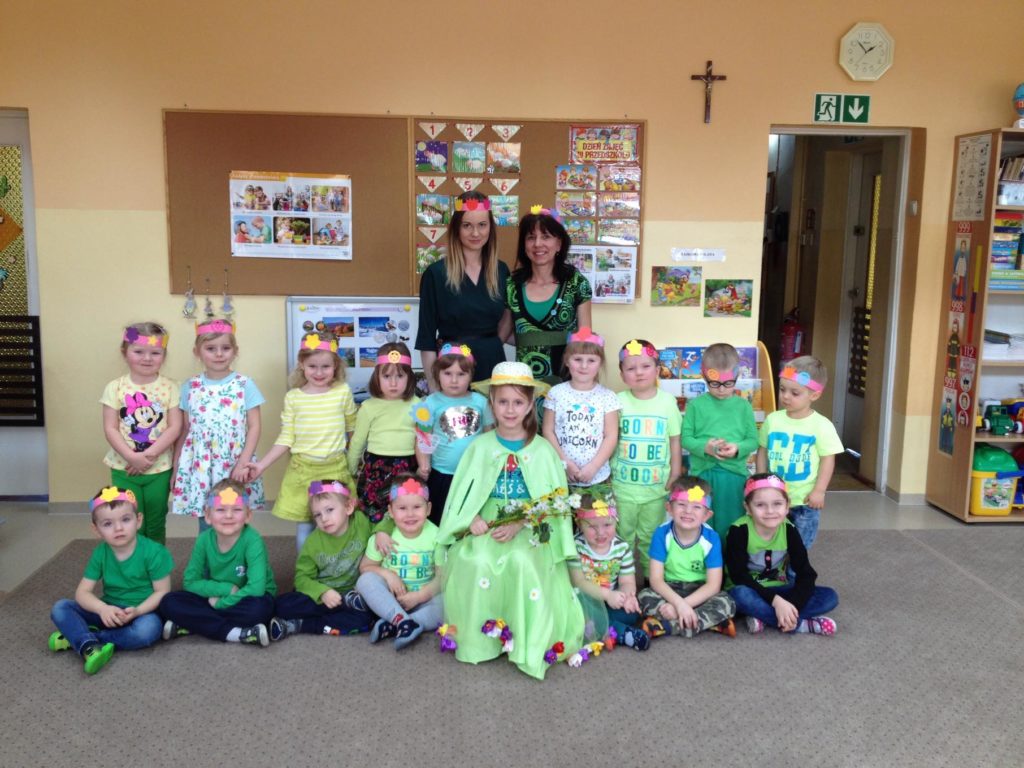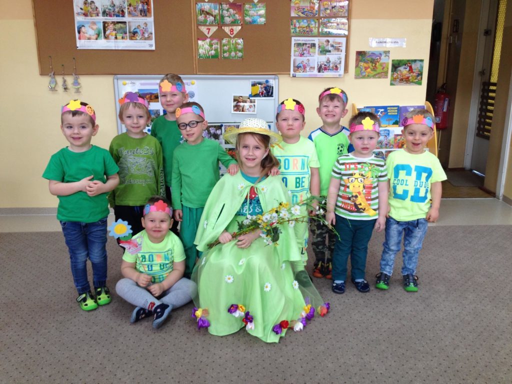 Przedszkolaki tego dnia były ubrane na zielono. Głośnymi okrzykami i wesołą zabawą pożegnały zimę. Przygotowały kolorowe wianki, symbolizujące powitanie wiosny. Przy ich prezentacji były radosne tańce. Dzieci rozwiązywały też zagadki i wykonywały zadania związane z wiosną.