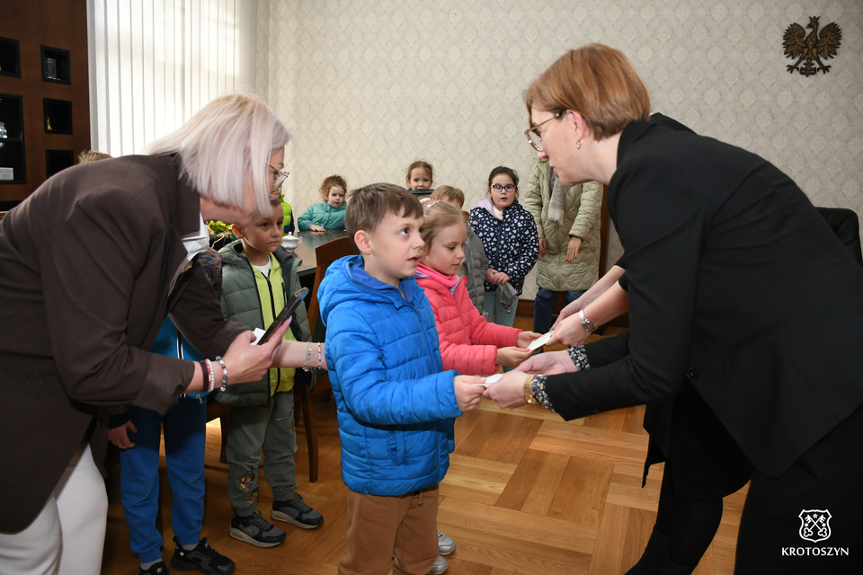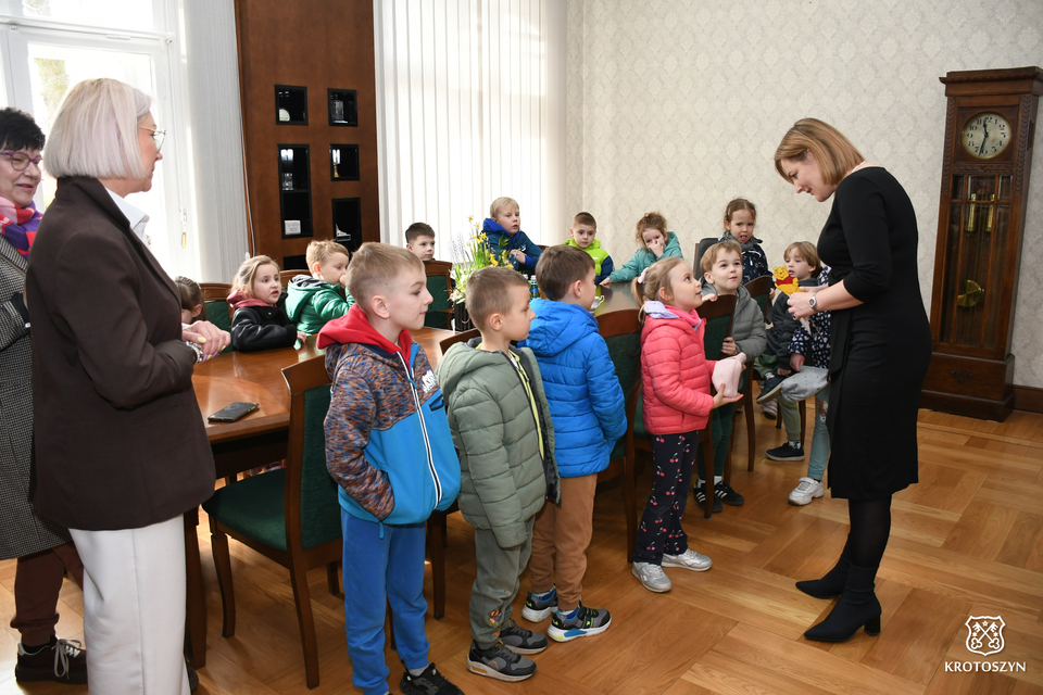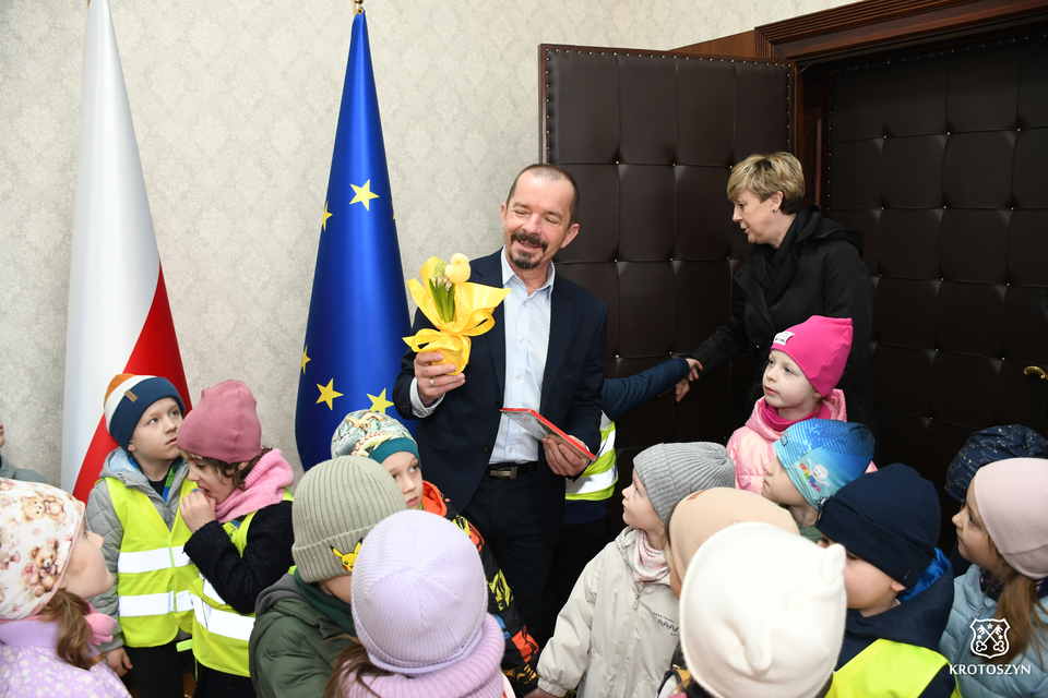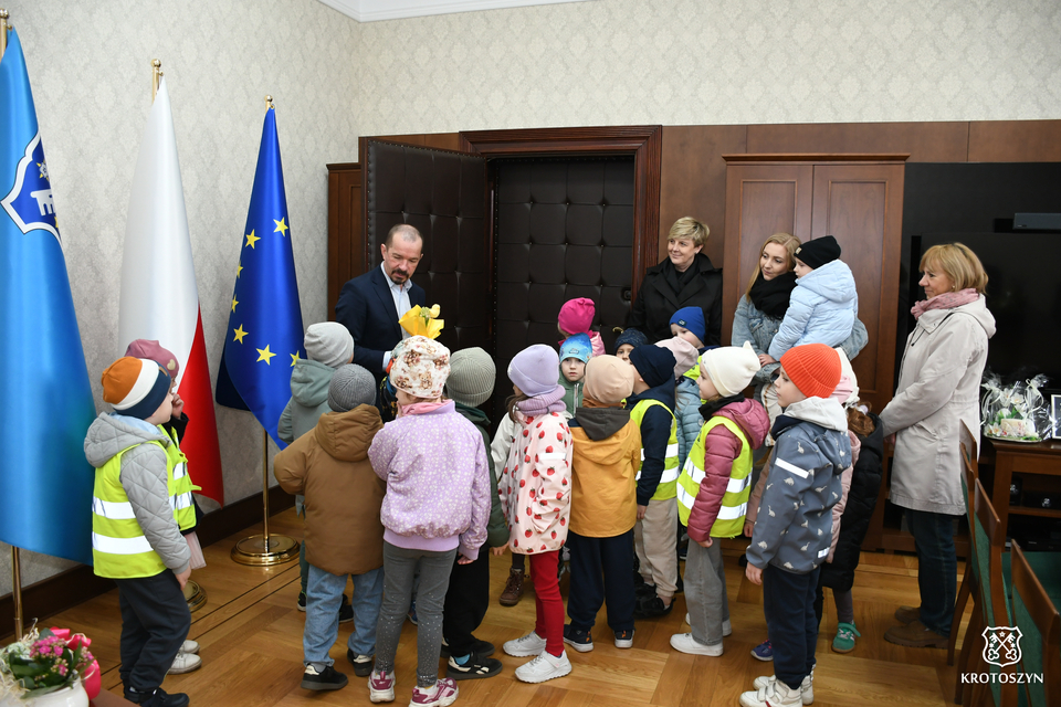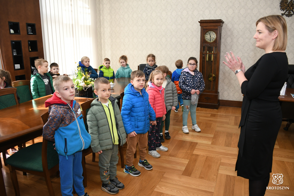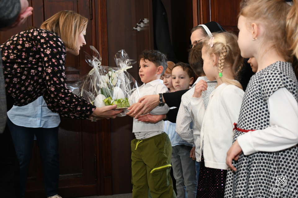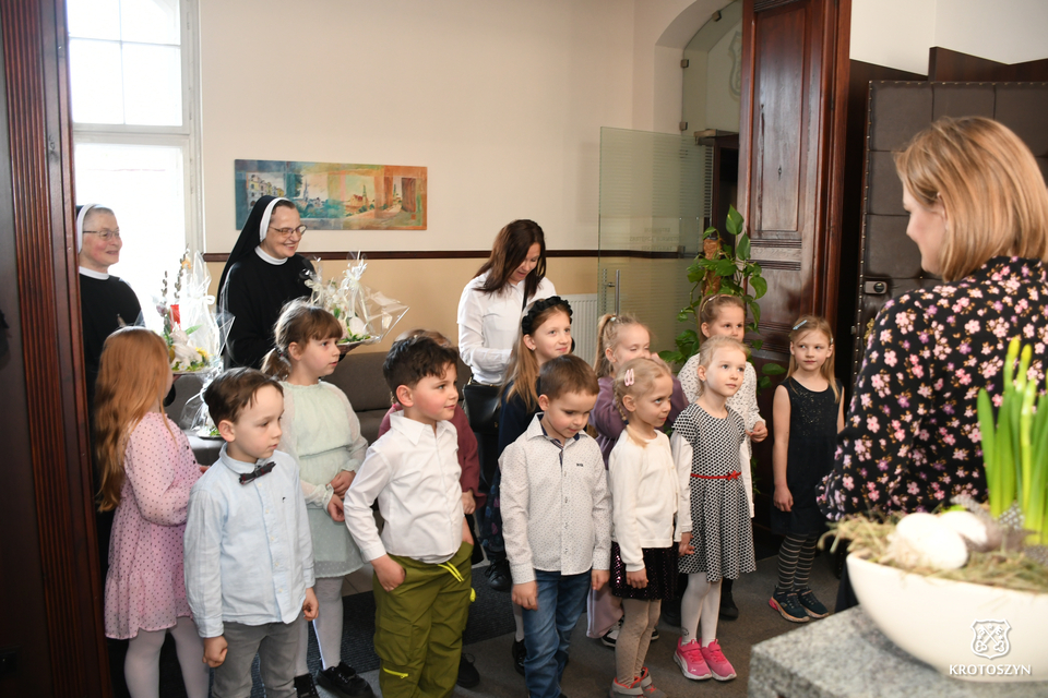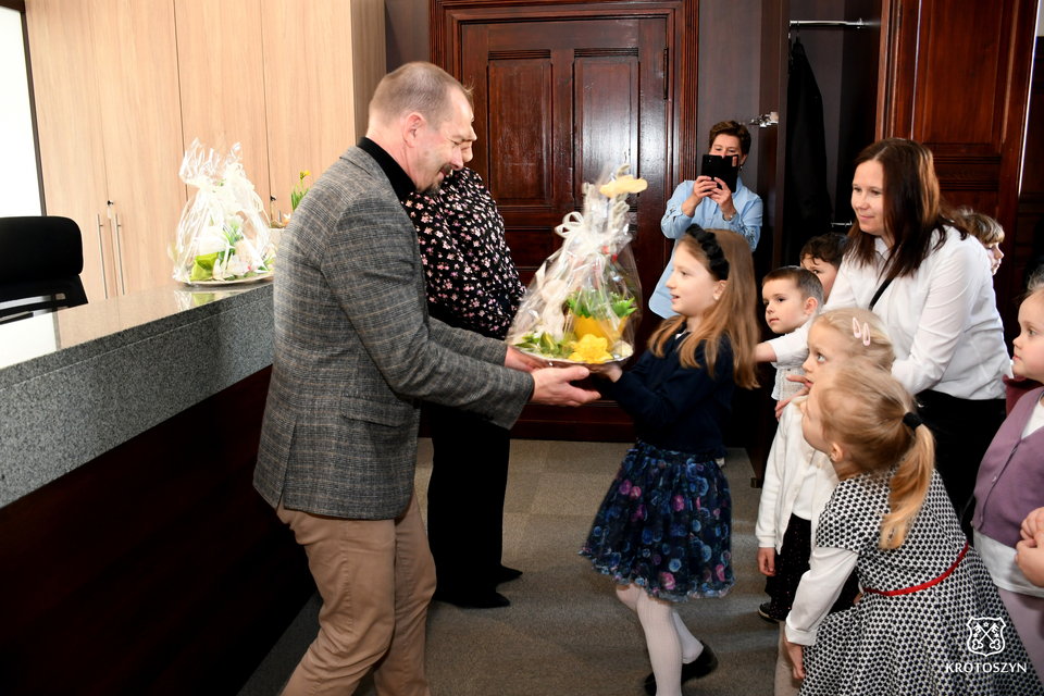 W okresie poprzedzającym Święta Wielkanocne do Urzędu Miejskiego w Krotoszynie zawitały dzieci z Przedszkola „Słoneczko”, Przedszkola „Wesoła Gromadka” oraz Przedszkola „Kubuś Puchatek”. Mali goście zostali serdecznie przyjęci przez przedstawicieli samorządu, wprowadzając do urzędu radosną i świąteczną atmosferę.