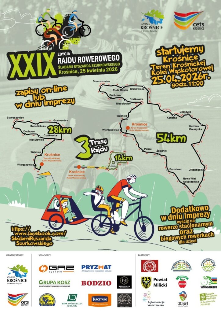 Centrum Edukacyjno-Turystyczno-Sportowe w Krośnicach zapowiada kolejną odsłonę jednej z najbardziej rozpoznawalnych imprez rowerowych w gminie. 29. Rajd Rowerowy „Śladami Ryszarda Szurkowskiego” odbędzie się już za niespełna miesiąc.