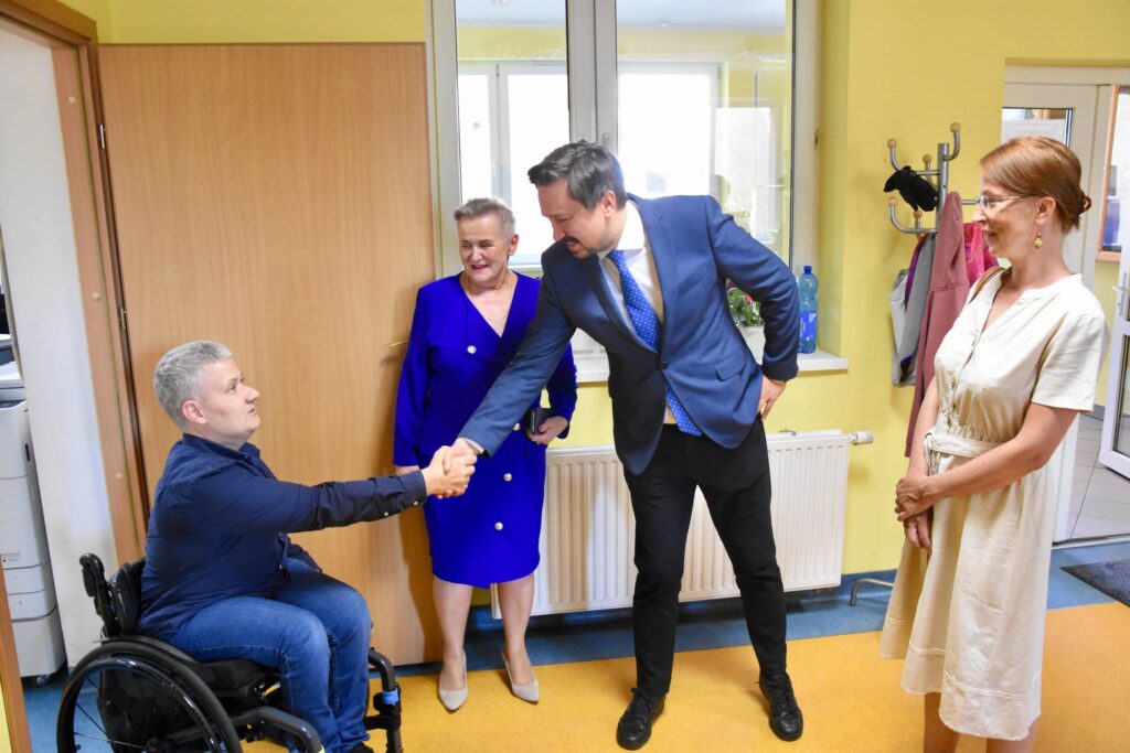 Gość odwiedził też Warsztat Terapii Zajęciowej w Miliczu i Środowiskowy Dom Samopomocy w Miliczu, doceniając kładziony tam nacisk na bezpieczeństwo uczestników i kadry. Tam też spotkał się z przedstawicielami samorządu, starostą Dorotą Folmer i burmistrzem Wojciechem Piskozubem.