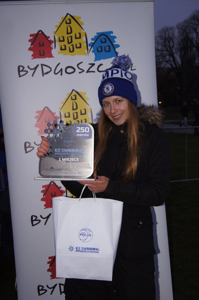 Z kolei na 250 m Monika dała prawdziwy popis, triumfując – z czasem 3:01,40 – zarówno w gronie pań, jak i w open. Dość powiedzieć, że jeden z kibiców stwierdził, iż „ona nie płynie jak człowiek tylko jak motorówka”. Warto też dodać, że krotoszynianka była najmłodszą uczestniczką Ice Swimming Festivalu.