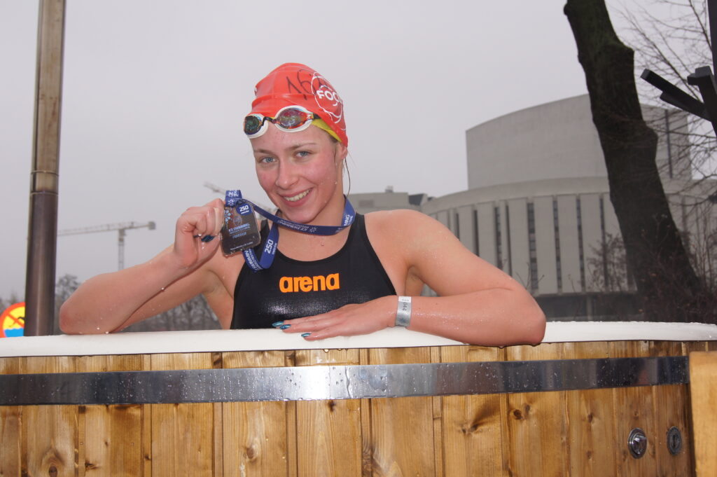 Dla Moniki Jadczak były to pierwsze zawody pływackie w zimowej aurze. Krotoszynianka startowała na dystansach 100 i 250 m. Krótszy z nich pokonała w czasie 1 minuta, 51 sekund i 10 setnych, co dało jej dziewiąte miejsce w klasyfikacji open i pierwsze wśród kobiet.