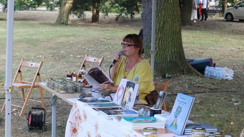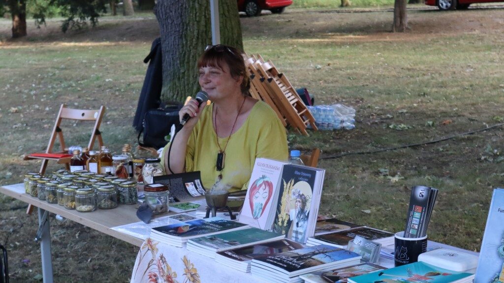Dużym zainteresowaniem cieszył się kram zielarsko-książkowy „Wierszobajędy”. Wykład zielarski przeprowadziła Katarzyna Georgiou. Jest to nauczycielka z wieloletnim kanadyjskim doświadczeniem oraz poetka, posiadająca ogromną wiedzę na temat ziół, ich właściwości i wykorzystania. Opowiedziała o wybranych roślinach, o tym, jak je zbierać, na jakie dolegliwości mogą pomóc i w jaki sposób przygotowywać z nich różne napary, maści czy nalewki. Słuchacze z ogromną ciekawością słuchali prowadzącej i chętnie chłonęli cenne informacje.