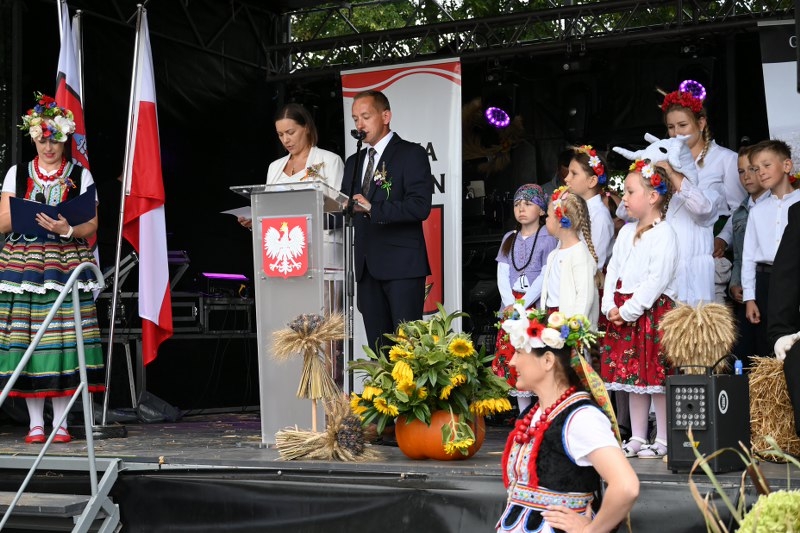 Uroczystość zainaugurowano odśpiewaniem hymnu i wypuszczeniem gołębi. Burmistrz Tomasz Lesiński dokonał oficjalnego otwarcia, kierując słowa uznania pod adresem rolników. Głos zabrali również inni zaproszeni goście. Centralnym punktem obrzędowej części ceremonii było przekazanie chleba oraz wieńca dożynkowego.