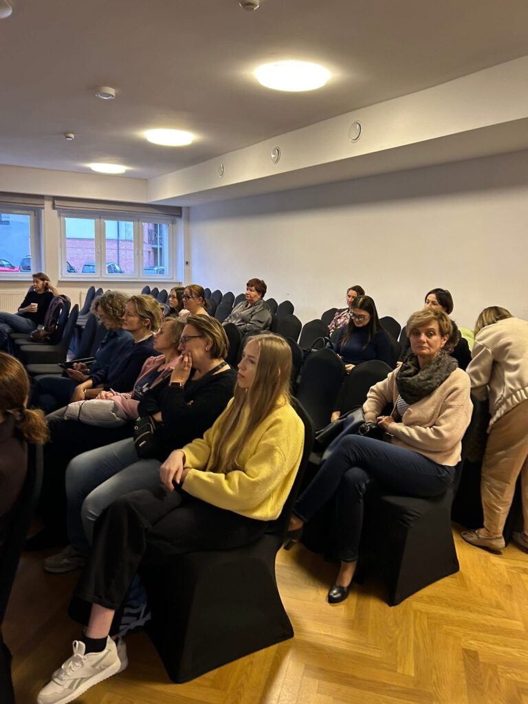 Podczas zajęć panowała serdeczna i otwarta atmosfera. Kobiety chętnie dzieliły się swoimi doświadczeniami, wspólnie się śmiały i z zaangażowaniem uczestniczyły w dyskusjach. W przerwach między tematami nie brakowało uśmiechów i rozmów o codziennym życiu, a także spontanicznych żartów, które rozładowywały napięcie.