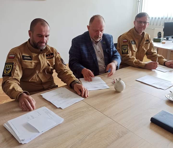 26 kwietnia w siedzibie milickiej komendy odbyło się spotkanie starosty Sławomira Strzeleckiego z komendantem powiatowym Państwowej Straży Pożarnej w Miliczu.