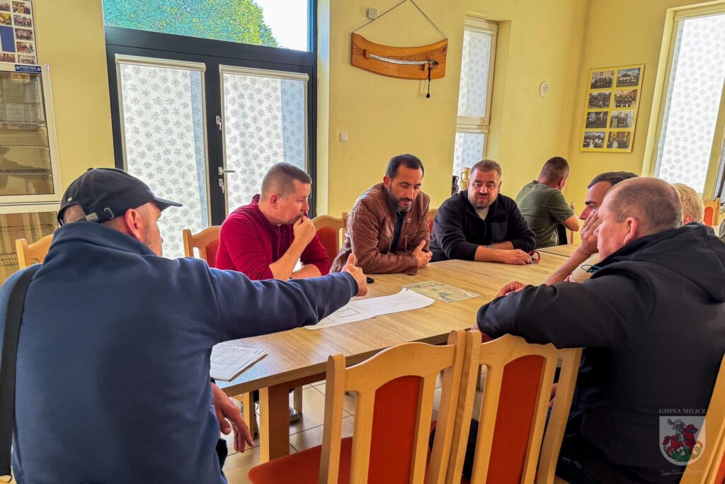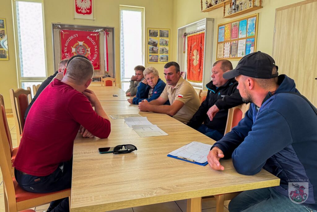 W spotkaniu udział wzięli: Wojciech Piskozub – burmistrz gminy Milicz, Grzegorz Kotarski – koordynator Gminnego Centrum Zarządzania Kryzysowego, Marcin Folmer – sekretarz Prezydium Zarządu Gminnego ZOSP RP w Miliczu oraz Halina Smolińska – radna Rady Miejskiej w Miliczu.