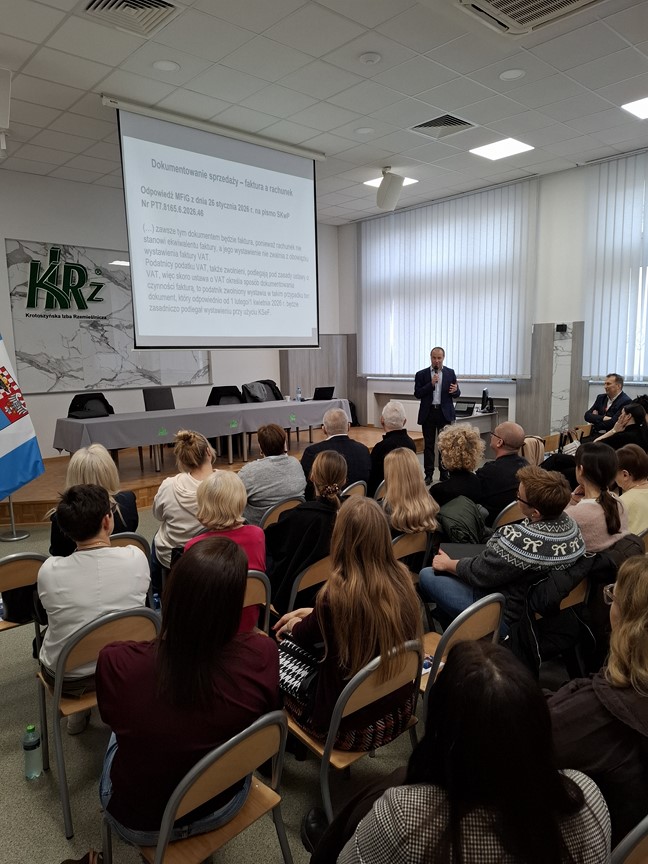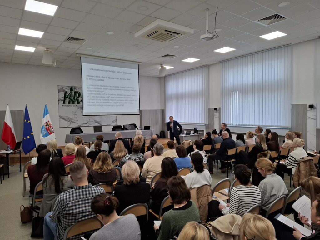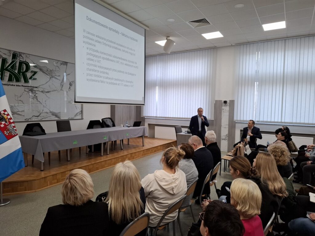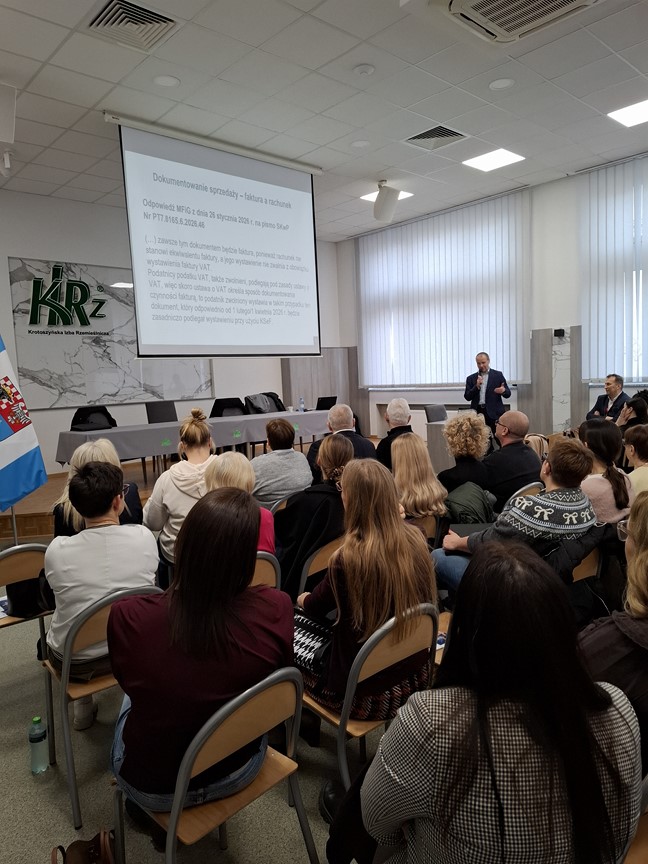 10 lutego w ramach cyklu szkoleń „Środy z KSeF” naczelnik Urzędu Skarbowego w Krotoszynie we współpracy ze Stowarzyszeniem Księgowych w Polsce zorganizował spotkanie w Cechu Rzemiosł Różnych.