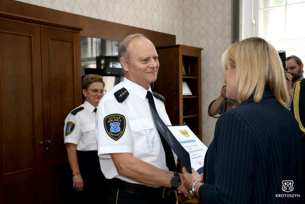 Z okazji przypadającego 29 sierpnia Dnia Straży Gminnej burmistrz Krotoszyna Natalia Robakowska uhonorowała funkcjonariuszy Straży Miejskiej, wręczając im awanse na wyższe stanowiska służbowe.