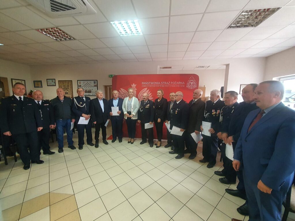 Na spotkanie w siedzibie krotoszyńskiej OSP przybyli poseł Katarzyna Sójka, Anna Lis – dyrektor biura poseł do Parlamentu Europejskiego Andżeliki Możdżanowskiej, burmistrz Franciszek Marszałek, st. bryg. Marek Kalak – komendant powiatowy Państwowej Straży Pożarnej w Krotoszynie.