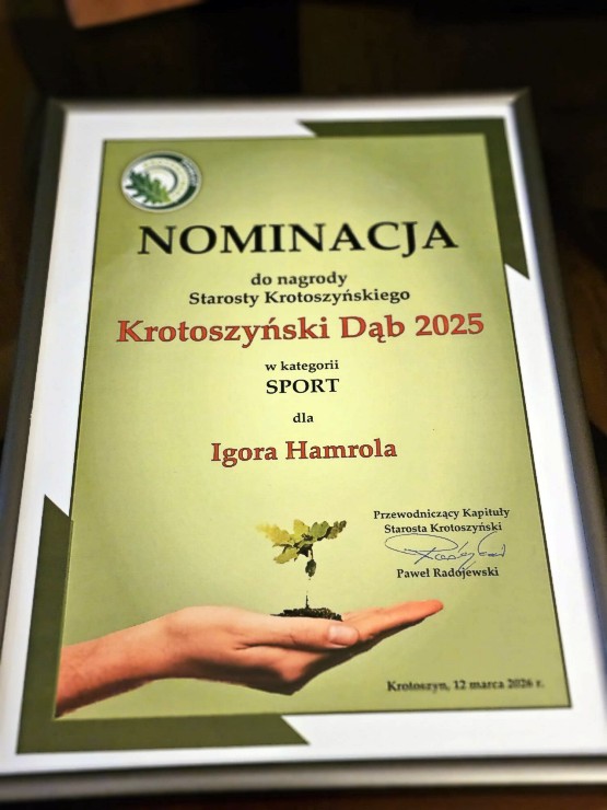 Warto wspomnieć, że 12 marca Igor Hamrol został jednym z trzech nominowanych do nagrody starosty krotoszyńskiego – Krotoszyński Dąb w kategorii „Sport”.
