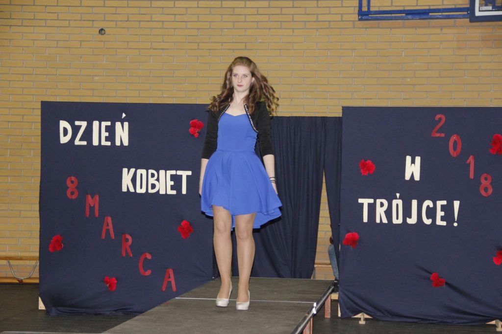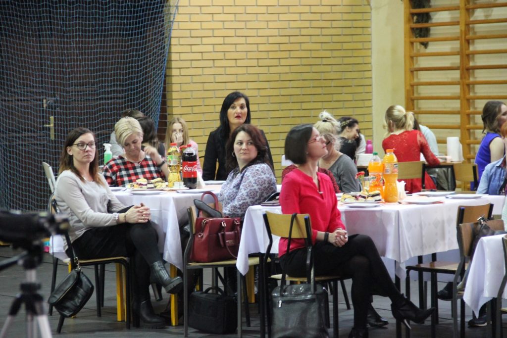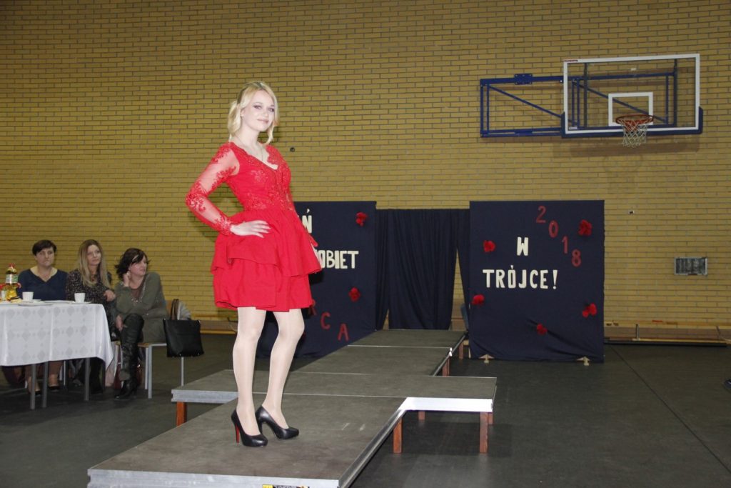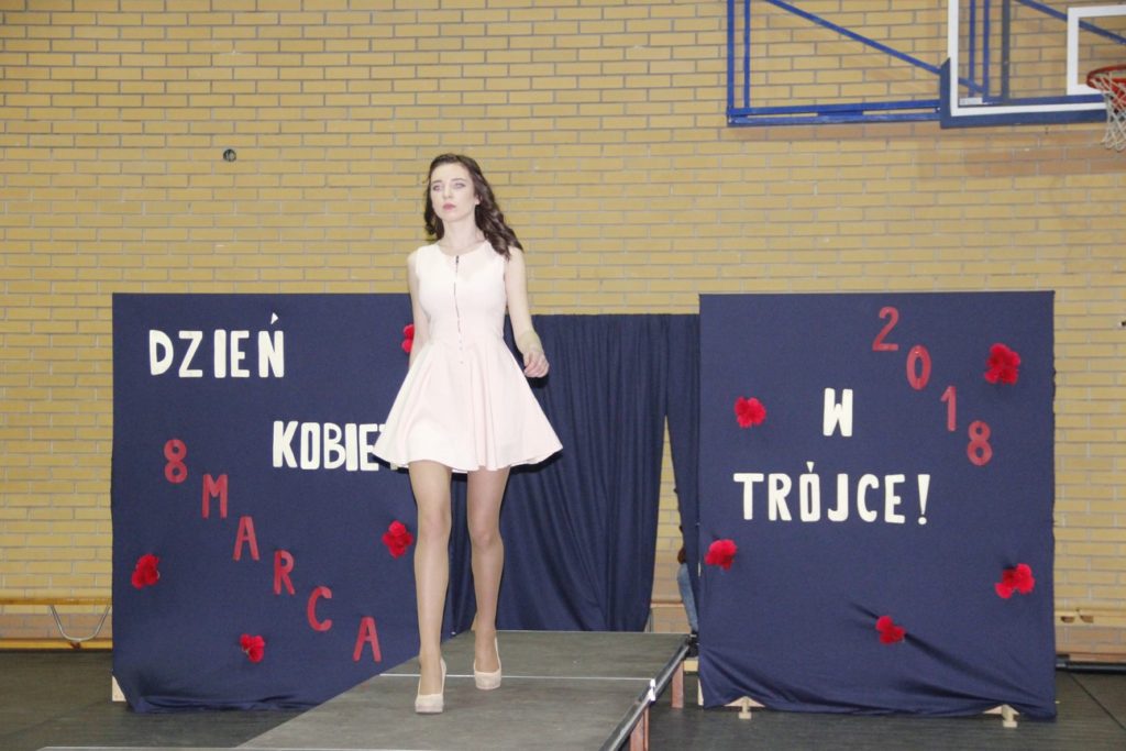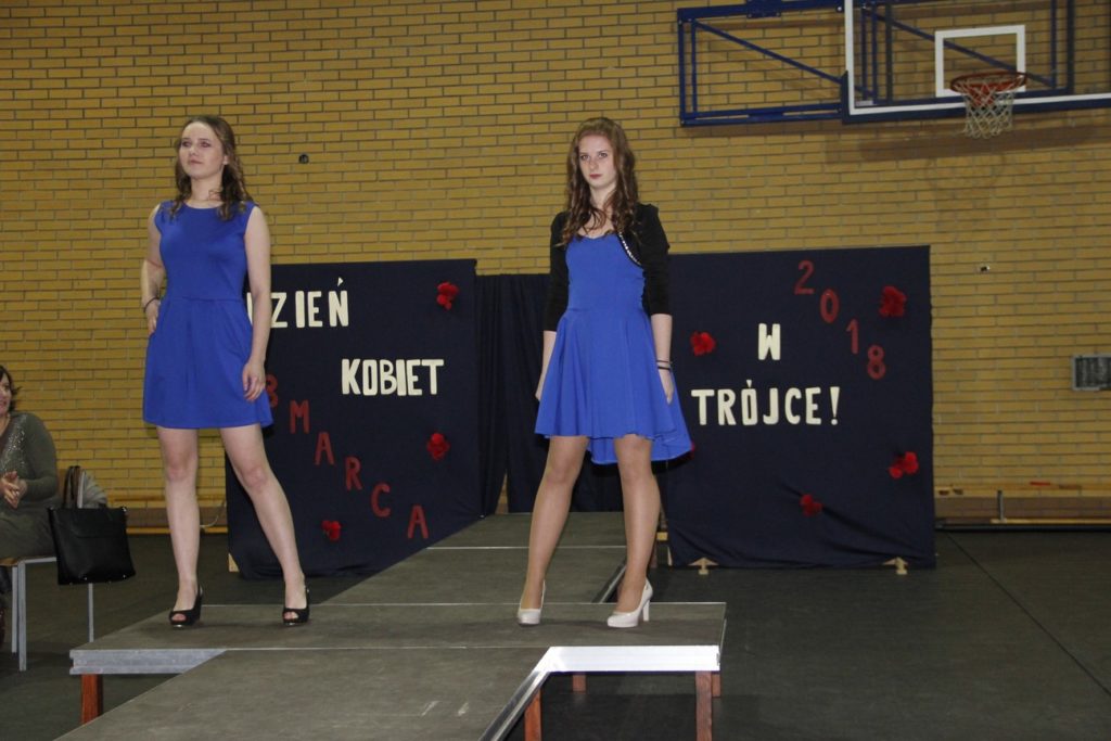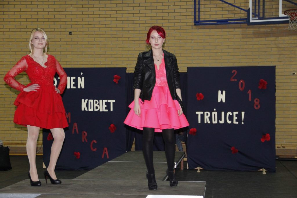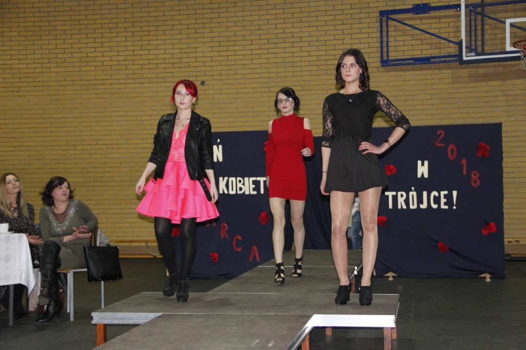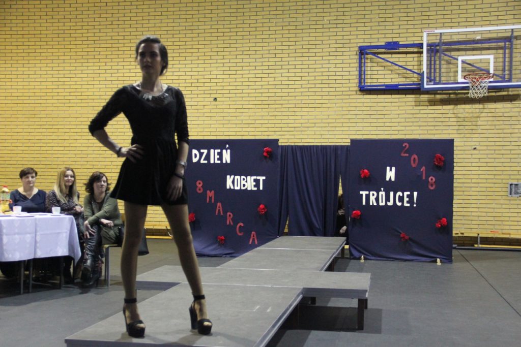 Imprezę rozpoczęła Izabela Kossakowska, dyrektor szkoły, która życzyła wszystkim paniom udanego wieczoru i wszelkiej pomyślności. Uczniowie przypomnieli historię święta oraz przedstawili sylwetki najbardziej znanych kobiet. Nie zabrakło fragmentów starych kronik z czasów PRL-u. Wszystkim paniom obowiązkowo wręczono legendarne czerwone goździki, co przypomniało dawne czasy. Tę część zwieńczył występ Gabrieli Siwek, która wykonała utwór „Gdzie ci mężczyźni”.