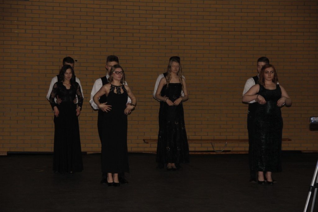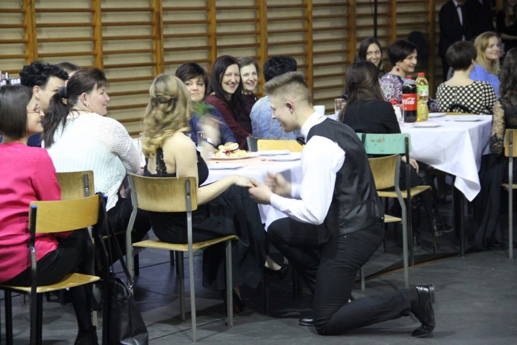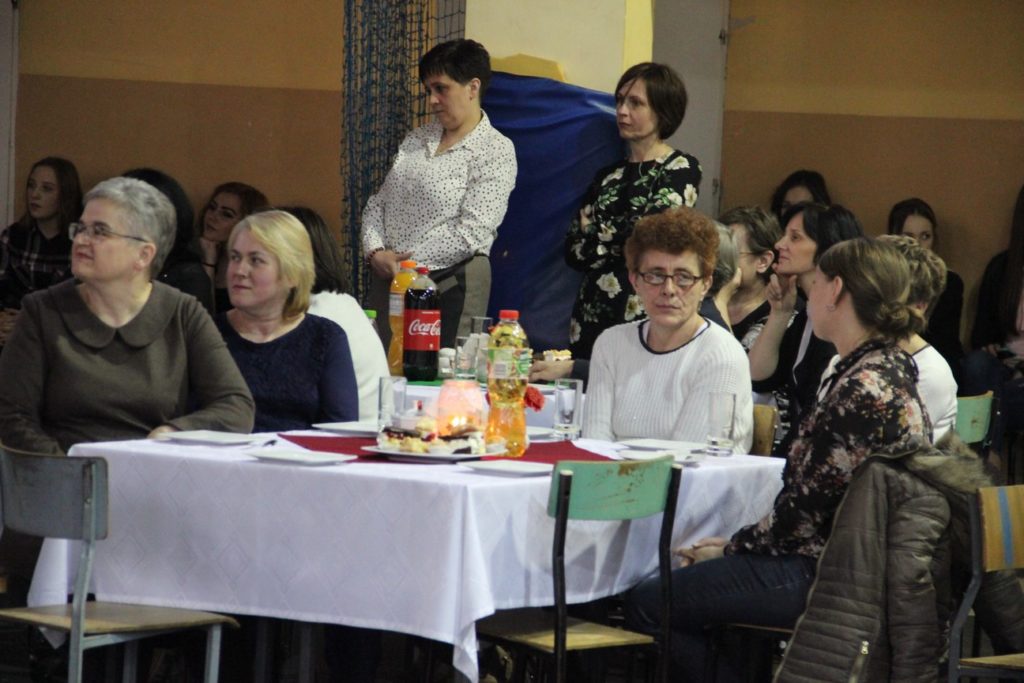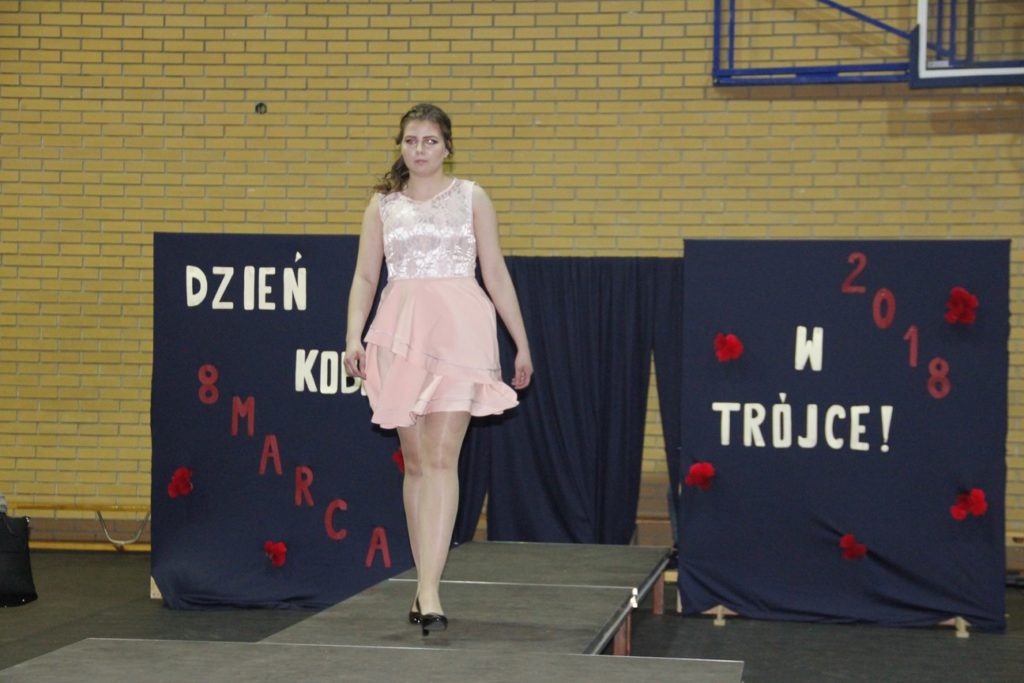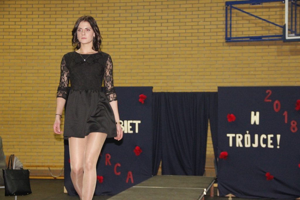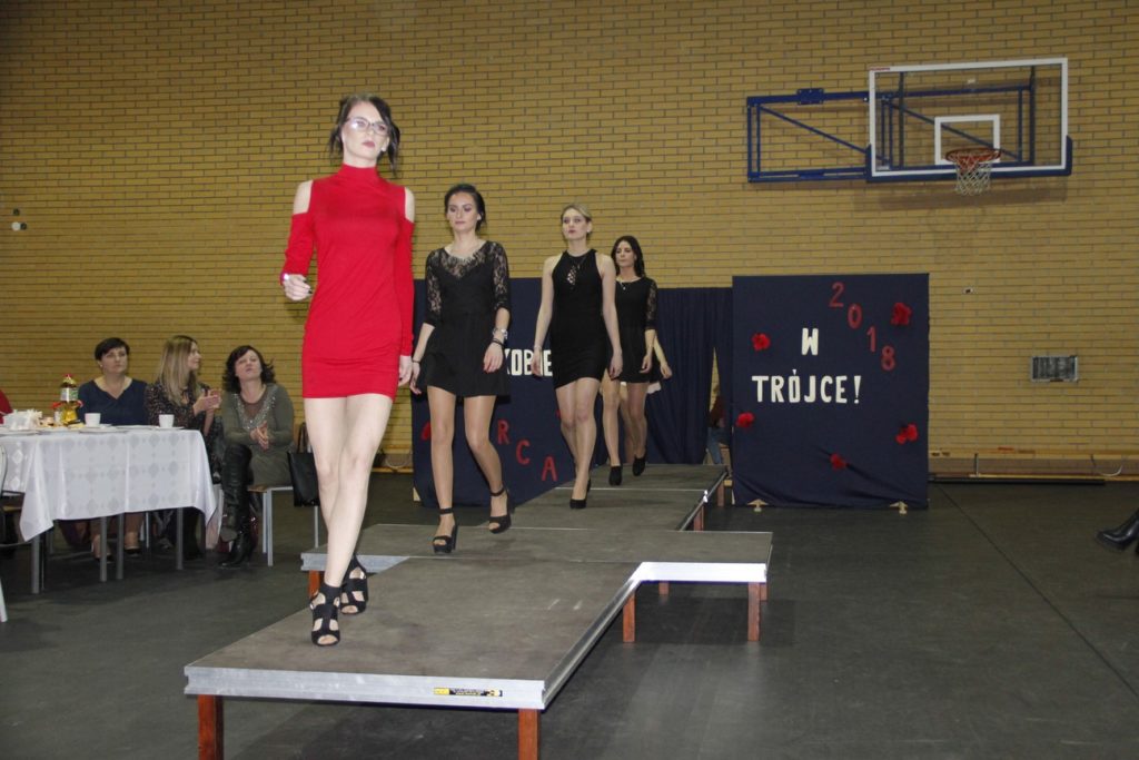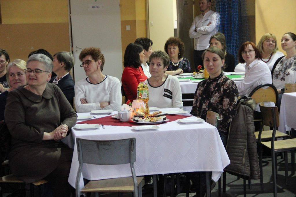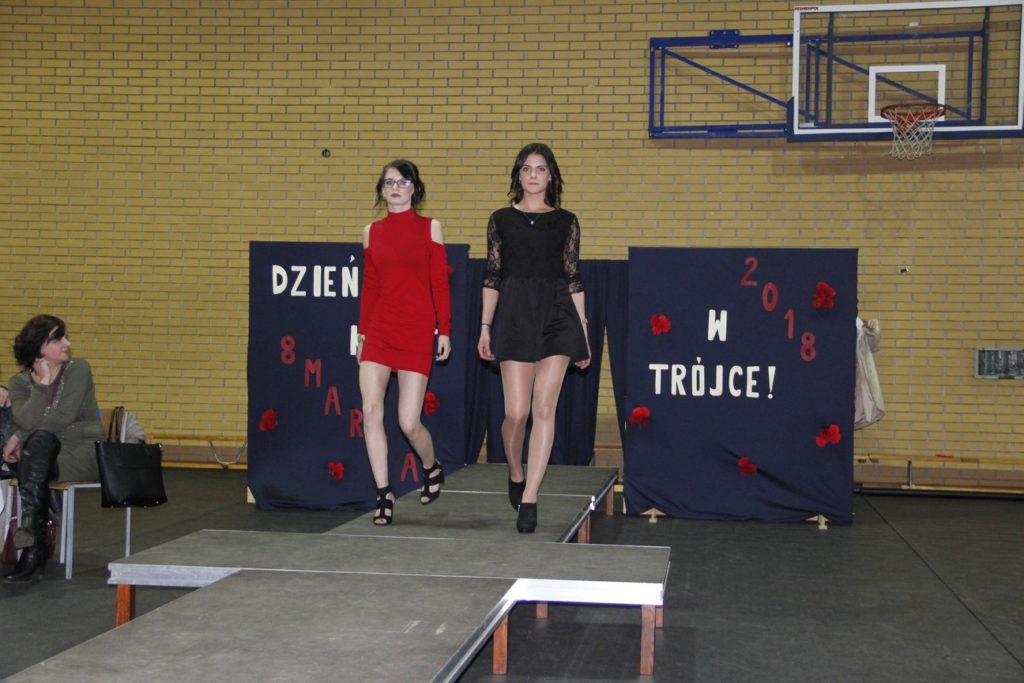Imprezę rozpoczęła Izabela Kossakowska, dyrektor szkoły, która życzyła wszystkim paniom udanego wieczoru i wszelkiej pomyślności. Uczniowie przypomnieli historię święta oraz przedstawili sylwetki najbardziej znanych kobiet. Nie zabrakło fragmentów starych kronik z czasów PRL-u. Wszystkim paniom obowiązkowo wręczono legendarne czerwone goździki, co przypomniało dawne czasy. Tę część zwieńczył występ Gabrieli Siwek, która wykonała utwór „Gdzie ci mężczyźni”.