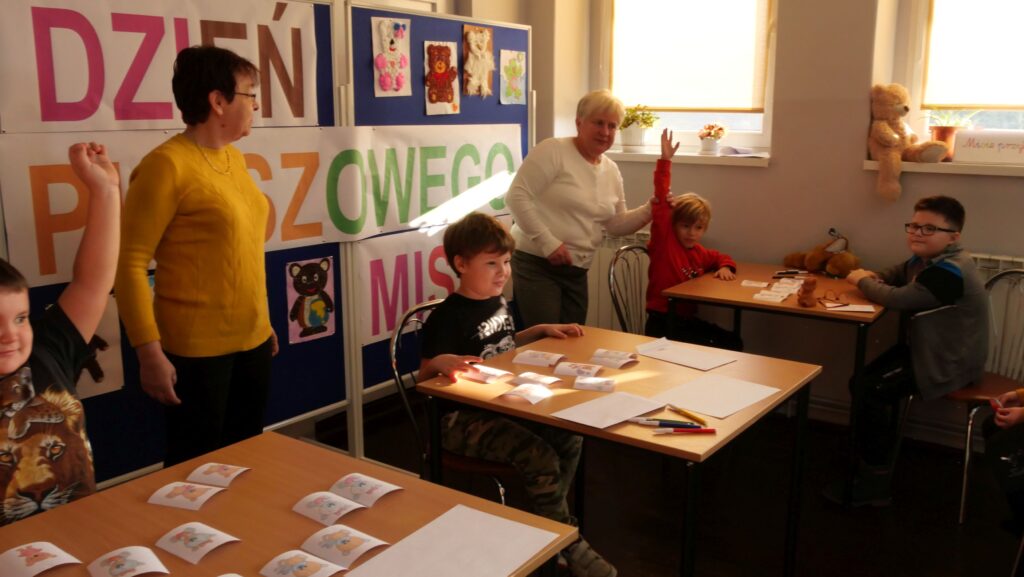 Dzieci mierzyły się też z wieloma zadaniami, jak choćby układnie puzzli i postaci misia z figur geometrycznych, łączenie w pary jednakowych portretów misiów, zagadki matematyczne. Każdy uczestnik w nagrodę otrzymał ciastko w kształcie misia.