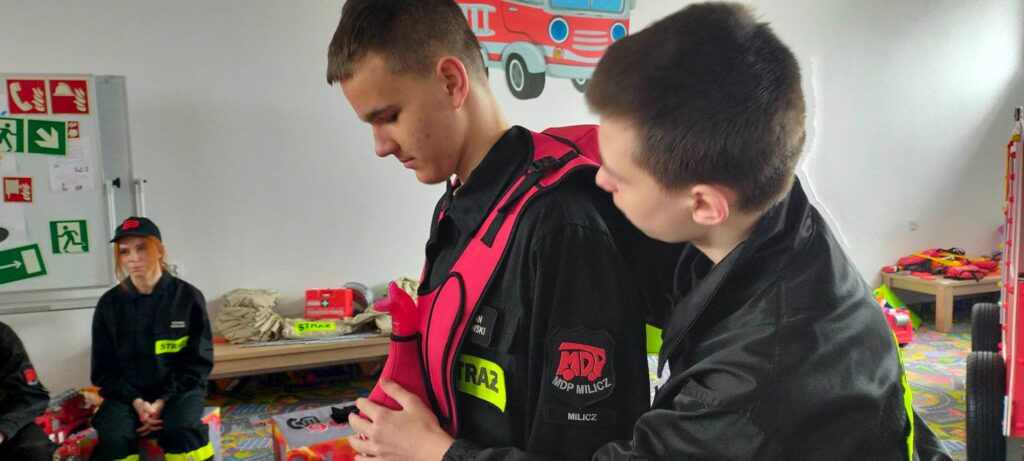 Adepci pożarnictwa zapoznali się z procedurą przyjmowania zgłoszeń, z wyposażeniem wozów bojowych oraz zasadami pomocy przedmedycznej. Na fantomach doskonalili swoje umiejętności w prowadzeniu akcji reanimacyjnej, a także mieli możliwość przećwiczenia postępowania w przypadku zadławienia. Dzięki specjalistycznej kamizelce każdy wykonał prawidłowy chwyt Heimlicha.