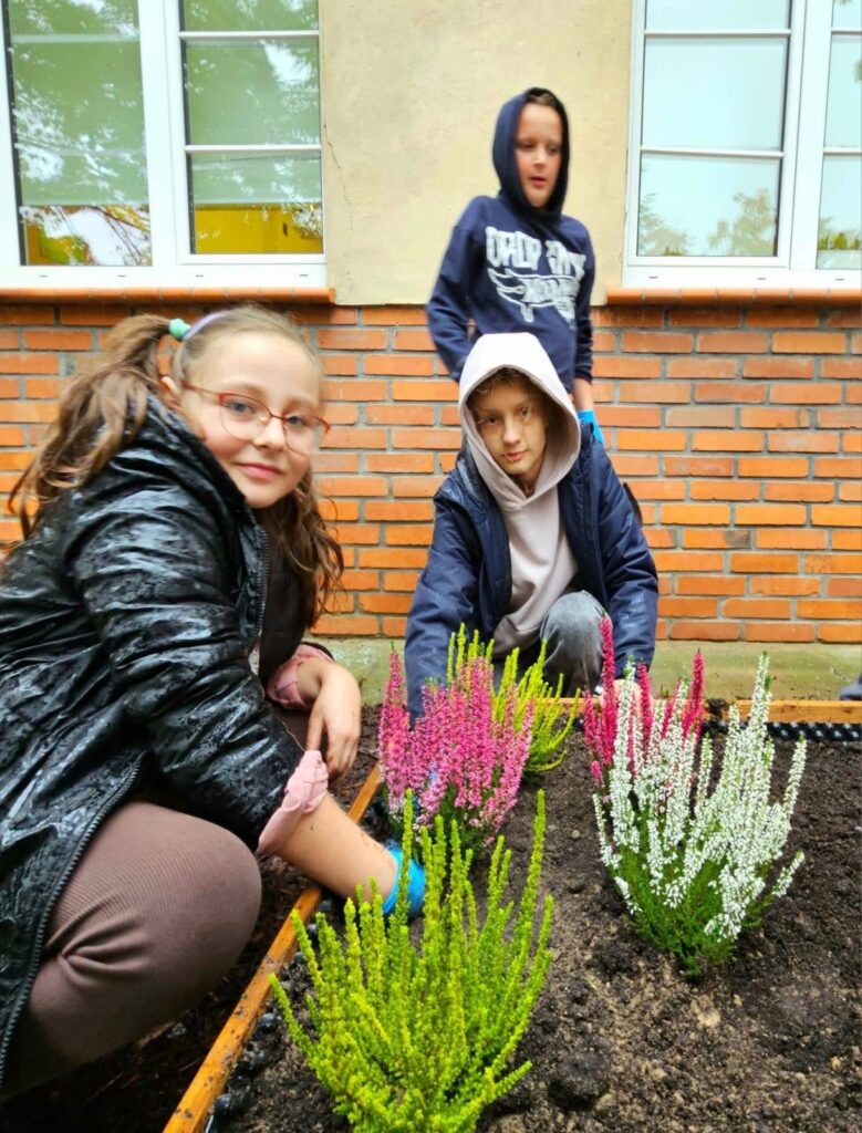 W tworzeniu strefy ogrodowej uczestniczyli pracownicy szkoły, a uczniowie wszystkich klas posadzili rośliny, nadając przestrzeni ostateczny kształt. Dzięki wspólnemu wysiłkowi powstało miejsce, które będzie nie tylko ozdobą szkoły, ale i praktyczną lekcją ekologii.