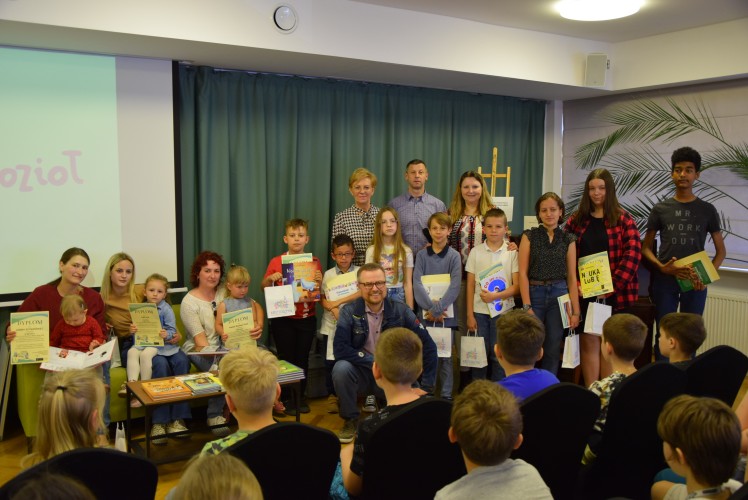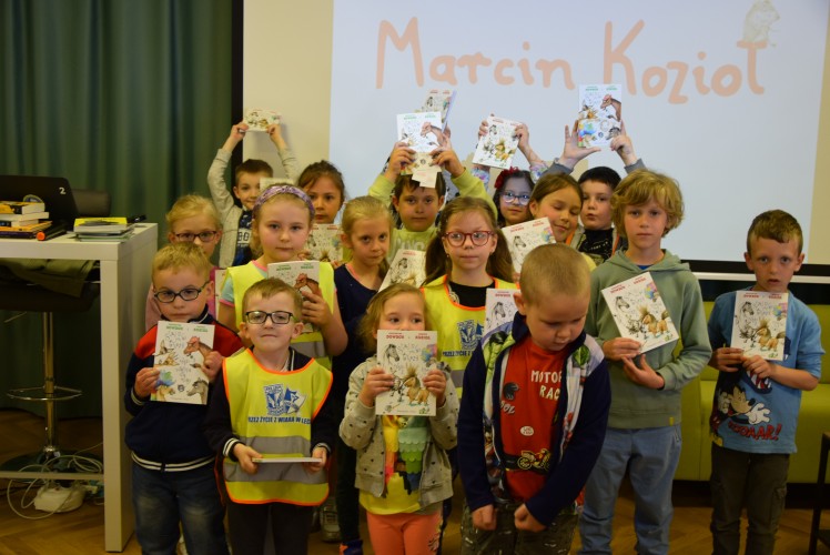 Zorganizowano także pięć spotkań  z pisarzem Marcinem Koziołem, autorem książek dla dzieci i młodzieży, zapalonym podróżnikiem, człowiekiem wielu pasji. Brały w nich udział przedszkolaki oraz uczniowie szkół podstawowych. Każde spotkanie dotyczyło innej tematyki – „Pogoda dla puchaczy” – o przyrodzie i pogodzie, „Stajnia pod tęczą” – co każdy powinien wiedzieć o koniach, „Podróżnicze spotkanie z Wombatem Maksymilianem”, „Skrzynia Władcy Piorunów”, „Nikola Tesla i elektryzująca nauka” – spotkanie motywacyjne. W tych wszystkich zajęciach uczestniczyło aż 590 osób. Miłym akcentem było wręczenie dzieciom dyplomów „Czytelnik na medal KBP” i książek.