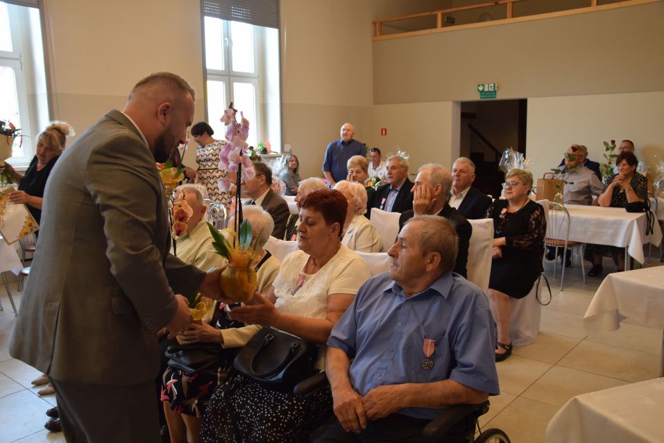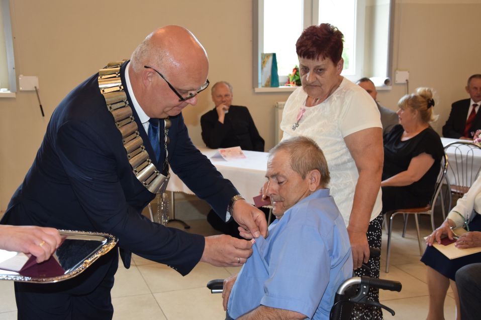 Na spotkanie przybyli wójt Ignacy Miecznikowski, przewodniczący Rady Gminy, sołtysi i kierownictwo Urzędu Stanu Cywilnego. W tym roku siedem par z terenu gminy zostało uhonorowanych przez prezydenta medalami „Za zgodność pożycia małżeńskiego, za trud włożony w zapewnienie bytu rodzinie, za wychowanie dzieci i przeżycie w jednym związku małżeńskim 50 lat”. Odznaczenia wręczali wójt Miecznikowski oraz Justyna Mujta – kierownik Urzędu Stanu Cywilnego. Jubilaci otrzymali także legitymacje, pamiątkowe dyplomy, kwiaty i drobne upominki. Ponadto odnowili przysięgę małżeńską na kolejne lata.