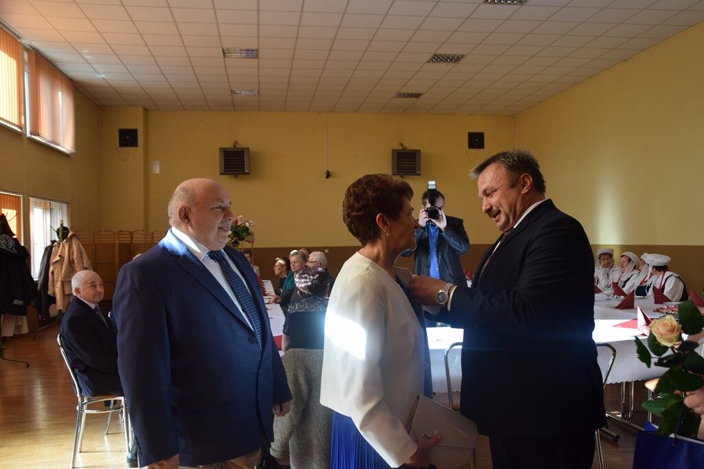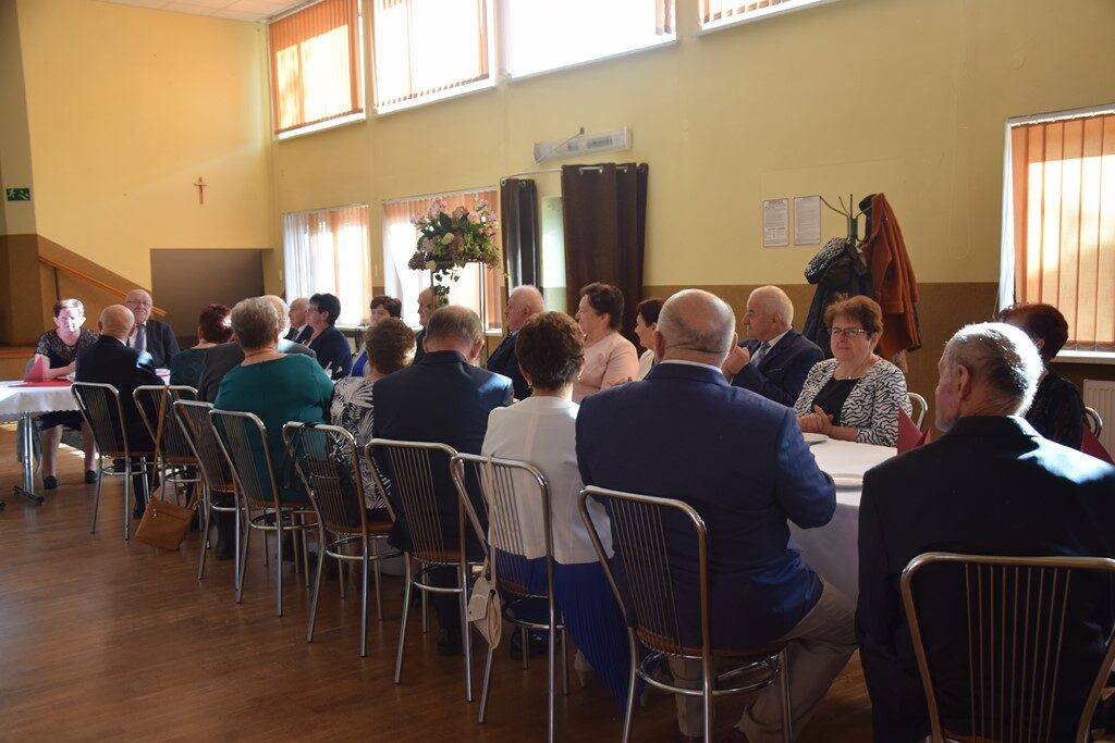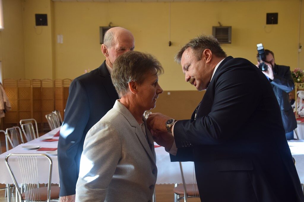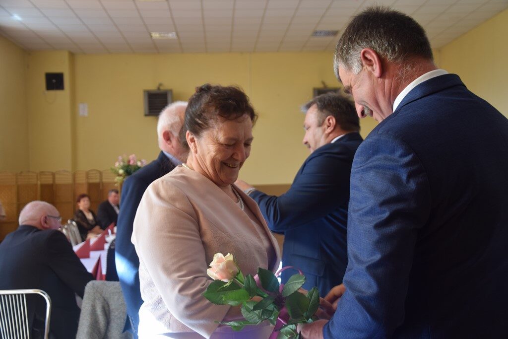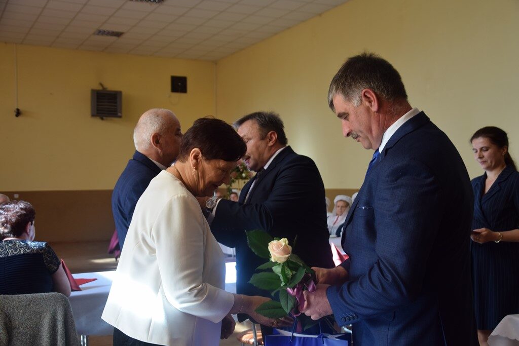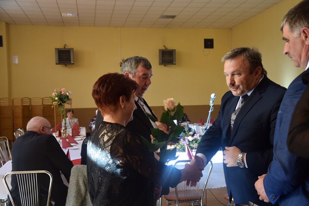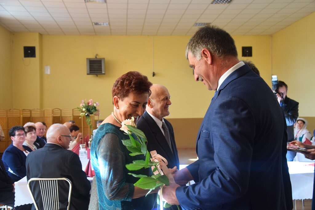 – Można powiedzieć, z perspektywy czasu, że rok 1971 był znakomitym rokiem na zawarcie trwałego związku małżeńskiego. Tak wielu jubilatów nie mieliśmy dotychczas ani razu w trakcie organizowanych uroczystości. To spotkanie jest okazją do złożenia na państwa ręce wyrazów uznania i podziękowania za to, że to tutaj uwiliście swoje gniazdo, za wychowanie dzieci, za pomoc w wychowaniu wnuków, za pracę na rzecz lokalnej społeczności. Dziękujemy również za to, że jesteście wspaniałym wzorcem stabilności uczuć, trwałości związku małżeńskiego oraz wyrzeczeń podejmowanych dla dobra założonej rodziny – zakomunikował wójt Mariusz Dymarski.