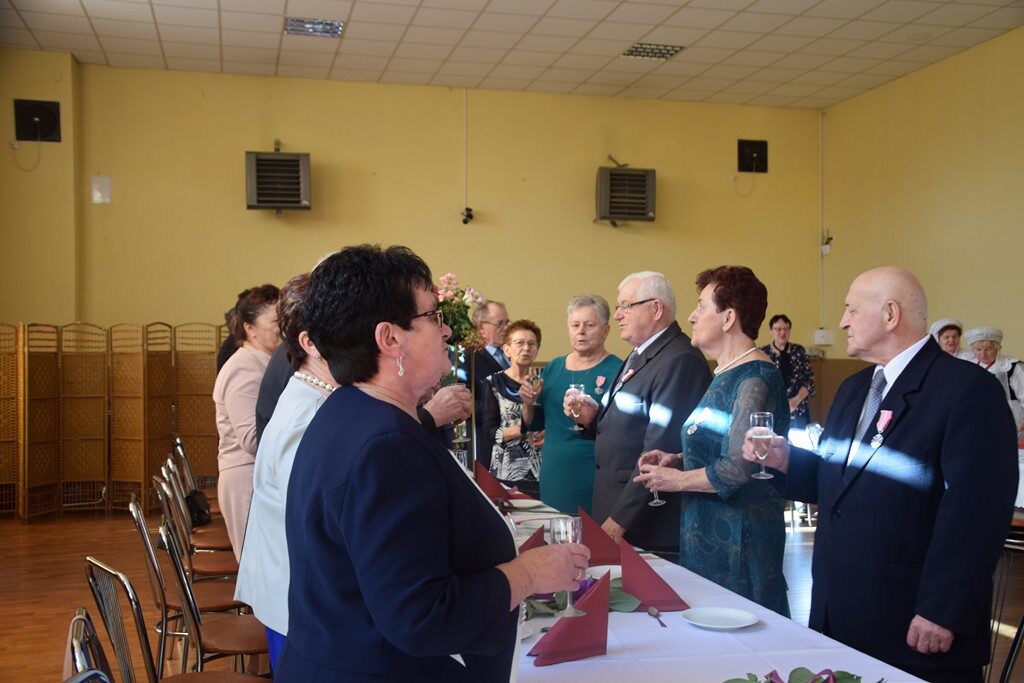 Po uroczystym wręczeniu medali i wykonaniu pamiątkowych fotografii jubilaci wznieśli toast. Później przyszedł czas na rozmowy i wspomnienia. Uroczystość swoim występem uświetnił zespół Kalina z Nowej Wsi.