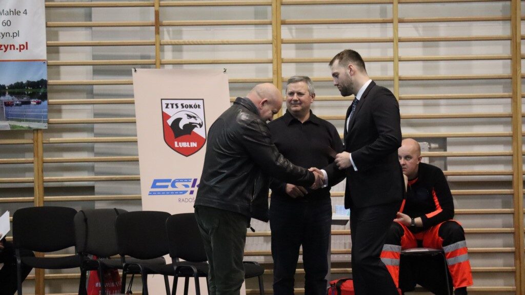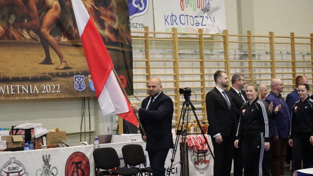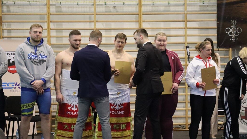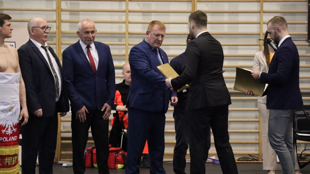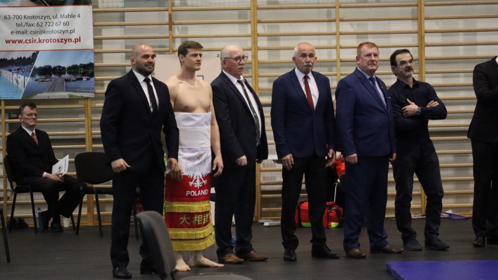 – Po raz kolejny mamy możliwość gościć was w Krotoszynie, w tym centralnym ośrodku sumo w Polsce. Chciałbym od razu powiedzieć, że bardzo cieszy mnie, że tak wielu zawodników z całej Polski przybyło do Krotoszyna. Przy tej okazji chcę serdecznie podziękować władzom miasta za wsparcie, ale również władzom powiatu. Nie tylko wspierają klub krotoszyński, ale każdą naszą inicjatywę, w tym inicjatywę organizacji tych zawodów. Dziękuję też burmistrzowi Franciszkowi Marszałkowi za wsparcie, jakie płynie z gminy Krotoszyn na organizację Mistrzostw Europy Młodzieżowców i Seniorów, które odbędą się w tym roku w Krotoszynie. Warto dodać, iż Ministerstwo Sportu pochwaliło organizację imprez, wiedząc, na jakim poziomie te zawody zawsze się odbywają. Zawsze dokładamy wszelkich starań, aby poziom naszych turniejów był europejski. Ministerstwo poinformowało nas, że wesprze organizację mistrzostw Europy i przekazało na konto Polskiego Związku Sumo 60 tysięcy złotych – mówił Kewin Rozum, prezes Polskiego Związku Sumo. Następnie wręczył wyróżnionym zawodnikom i trenerom podziękowania i odznaczenia.