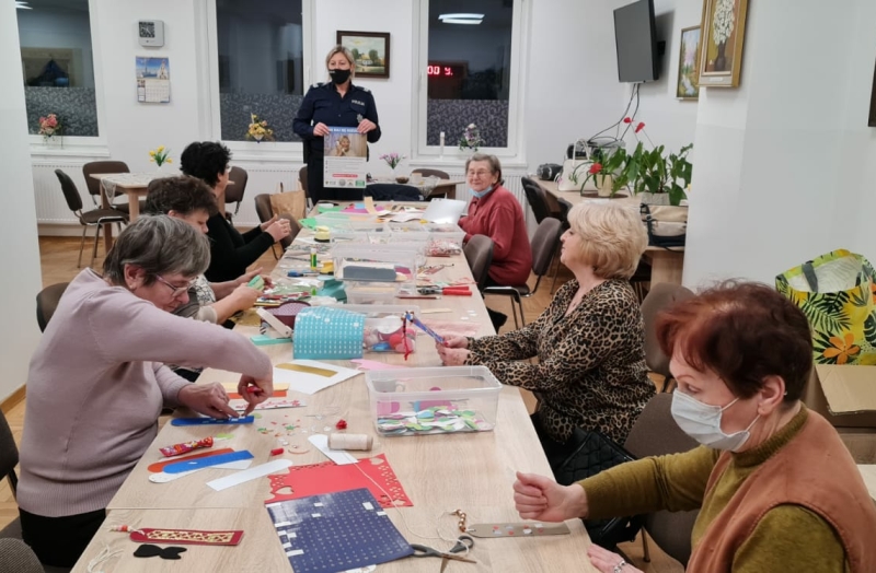 Sierż. szt. Aleksandra Piłaszewicz, zajmująca się m.in. profilaktyką i zapobieganiem zjawiskom przestępczym, opowiedziała o oszustwach, na które narażone są zwłaszcza osoby starsze. Omówiła rozmaite metody przestępców, którzy podszywają się pod inne osoby, by wyłudzić pieniądze. Policjantka zaapelowała do uczestników spotkania, by w przypadku telefonu od osoby podającej się za krewnego, ale nierozpoznanej przez rozmówcę nie podejmować żadnych kroków w kierunku przekazywania pieniędzy. Może to bowiem być próba oszustwa.