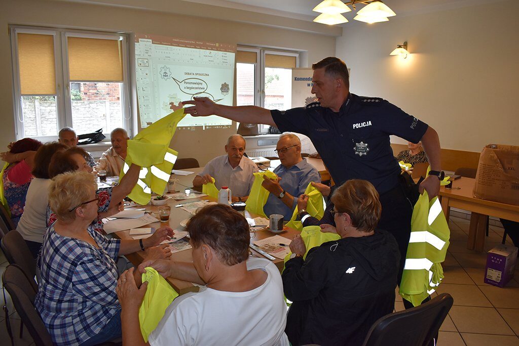 Uczestnicy spotkania byli bardzo aktywni i chętnie dzielili się własnymi doświadczeniami. Seniorzy zadawali policjantom wiele pytań. Po debacie wszyscy otrzymali odblaski, ulotki informacyjne i kamizelki odblaskowe. Seniorzy wypełnili ankiety, z których wynika, iż zdecydowana większość z nich uważa, że tego typu spotkania są potrzebne.
