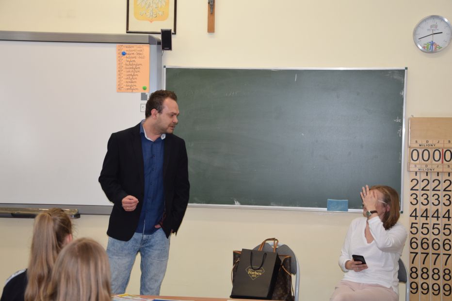 Podczas spotkania z uczniami goście opowiedzieli, jak to jest być przedsiębiorcą na lokalnym rynku. Sporo mówili o tym, jak wielka odpowiedzialność spoczywa na pracodawcy. Jak podkreślali, by firma dobrze funkcjonowała, trzeba wielu poświęceń, a i stresu przy tym nie brakuje. Często bywa tak, że ludzie nie dostrzegają, jak wiele trzeba poświęcić, będąc właścicielem firmy.