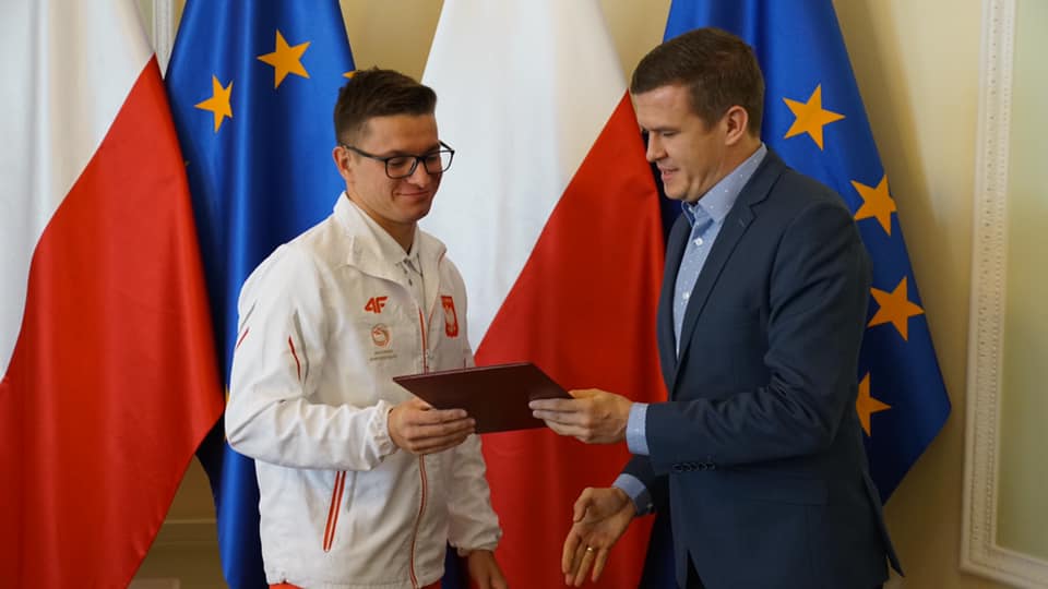 Na początku października w Ministerstwie Sportu i Turystyki odbyło się spotkanie z medalistami Mistrzostw Świata Niesłyszących w Pływaniu. Nie mogło tam oczywiście zabraknąć Konrada Powroźnika, który z tej imprezy przywiózł trzy medale.