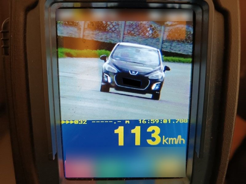 Mieszkaniec jednej z okolicznych wsi w terenie zabudowanym, gdzie obowiązuje ograniczenie prędkości jazdy do 50 km/h, jechał samochodem marki Peugeot z szybkością 113 km/h, czyli aż o 63 km/h za dużo. W związku z tym policjanci ukarali go mandatem w wysokości 2000 złotych oraz nałożyli 10 punktów karnych. Ponadto zatrzymano mu prawo jazdy, które przesłano do starosty w celu wydania decyzji o jego zatrzymaniu na okres trzech miesięcy.