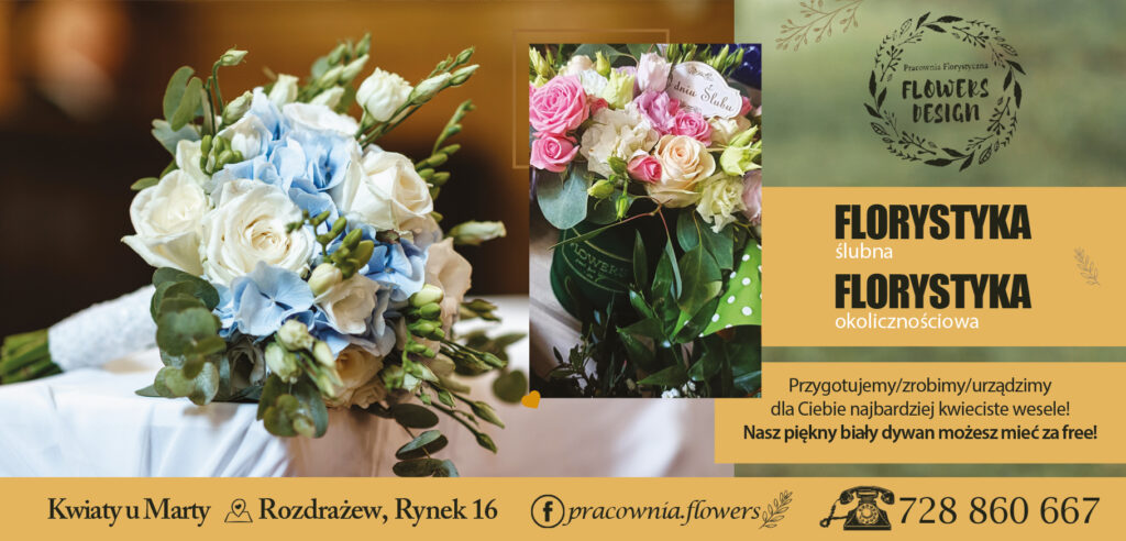 Zamówienia na wianki można składać do 13 grudnia w pracowni w Rozdrażewie bądź dzwoniąc pod numer telefonu 576 274 555. Zachęcamy do odwiedzania facebookowego profilu Flowers Design-Kwiaty u Marty, gdzie znajdziecie mnóstwo propozycji i inspiracji.