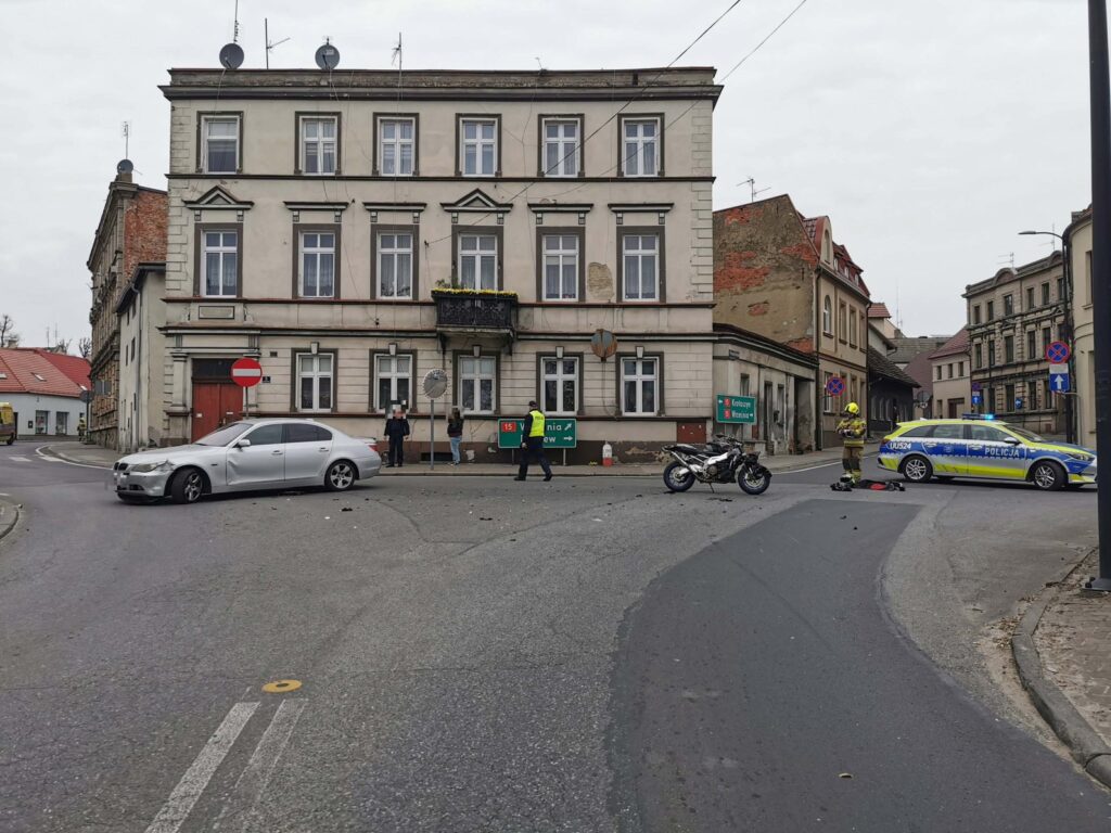 Zderzenie motocykla z BMW w Koźminie. Jedna osoba trafiła do szpitala