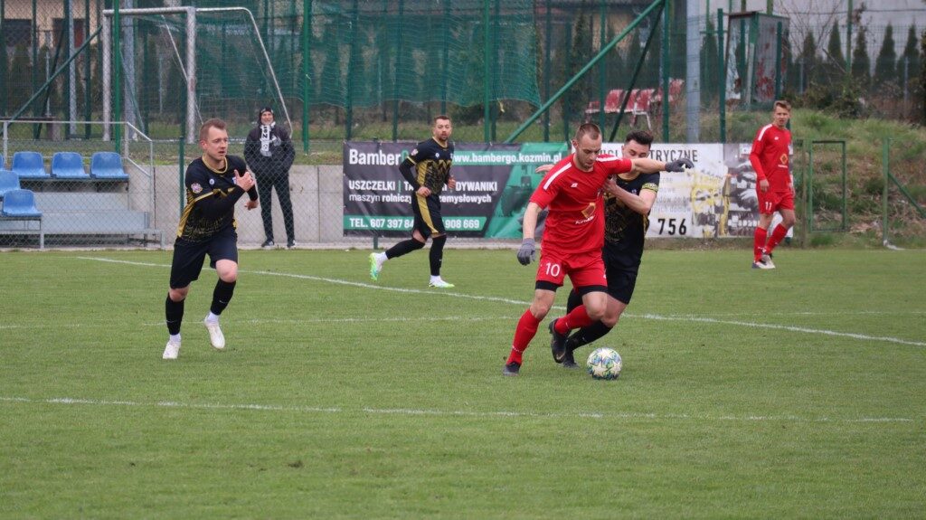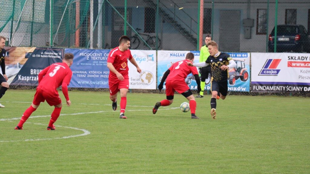 To zdecydowanie nie był udany występ podopiecznych Adama Zielińskiego. Przyjezdni otworzyli wynik spotkania już w 11. minucie gry po trafieniu Arkadiiego Herasymova. Koźminianie mogli się zrewanżować, kiedy to po wrzutce z rzutu rożnego głową uderzył Eryk Janowski, ale piłka poszybowała wysoko nad poprzeczką. W 29. minucie Zefka podwyższyła prowadzenie po strzale Dawida Ponitki, któremu asystował Błażej Ostry. Jeszcze przed przerwą ten ostatni także wpisał się na listę strzelców.