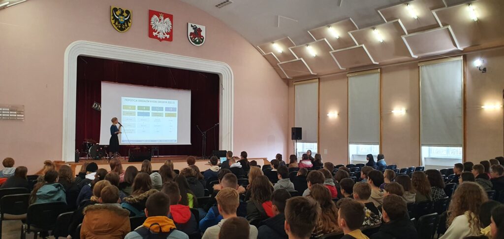 W dalszej części dyrektor Marzena Rokita przedstawiła system przyznawania punktów oraz zasady rekrutacji przyszłych uczniów. Opowiedziała również o profilach klas, jakie funkcjonują w szkole, o możliwościach rozwoju zainteresowań czy wyjazdach edukacyjnych. Do przybyłych przemawiała także Sylwia Gregorczuk z klasy IIIc, zachęcając uczniów szkół podstawowych do edukacji w I LO w Miliczu.