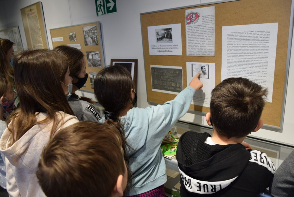 Ewa Bukowska, dyrektor placówki, zademonstrowała okładki z książek A. Fiedlera, z którymi dzieci podchodziły do malowidła ściennego, by wskazywać miejsca jego podróży. Potem najmłodsi oglądali książki o tematyce podróżniczej, a na mapach dopasowywali figurki zwierząt do krajów, które zwiedził patron KBP. Nie zabrakło wspólnego zdjęcia z lemurem – maskotką Oddziału dla Dzieci i Młodzieży. W drugiej części zajęć w sali warsztatowej dzieci wykonywały indiańskie pióropusze.