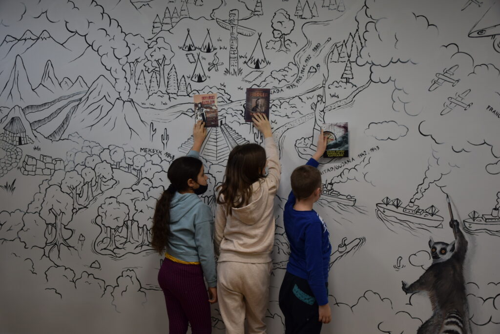 Spotkanie było wyjątkowe, albowiem odbyło się po raz pierwszy po wykonaniu naściennego malowidła w Strefie Młodych. Jego autorem jest Łukasz Grobelny. Najpierw uczestnicy zajęć obejrzeli mapę świata oraz dowiedzieli się wielu ciekawostek z podróży Arkadego Fiedlera, który jest patronem krotoszyńskiej biblioteki.